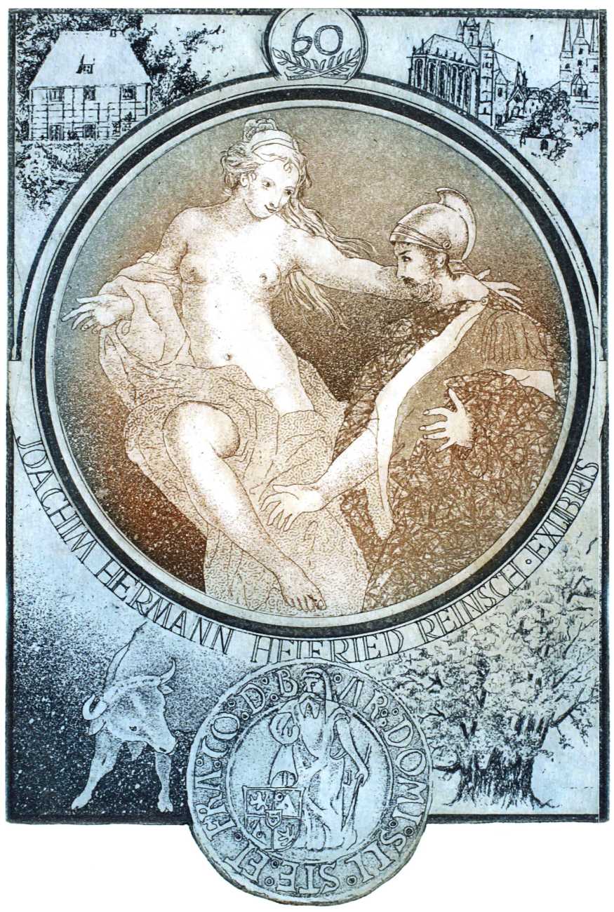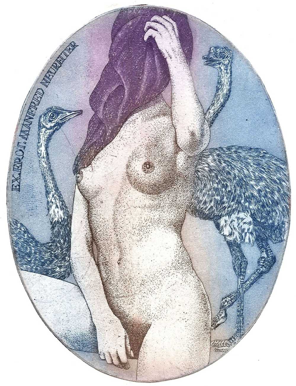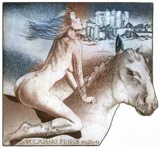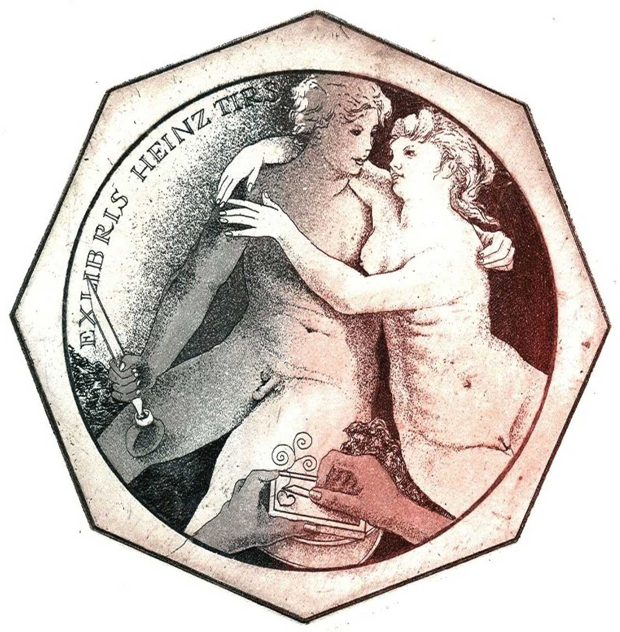 Olaf Gropp is one of a growing band of late twentieth century artists who rediscovered and experimented with the small, detailed genre of engraving which comes under the heading of ex libris or bookplates, though in most cases these small works were never commissioned nor designed to reside in actual books.