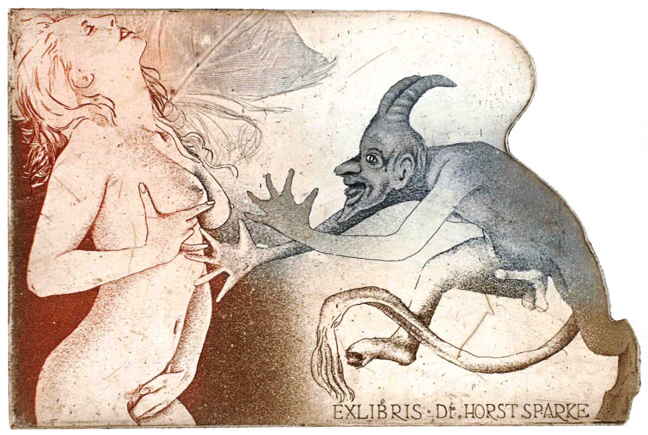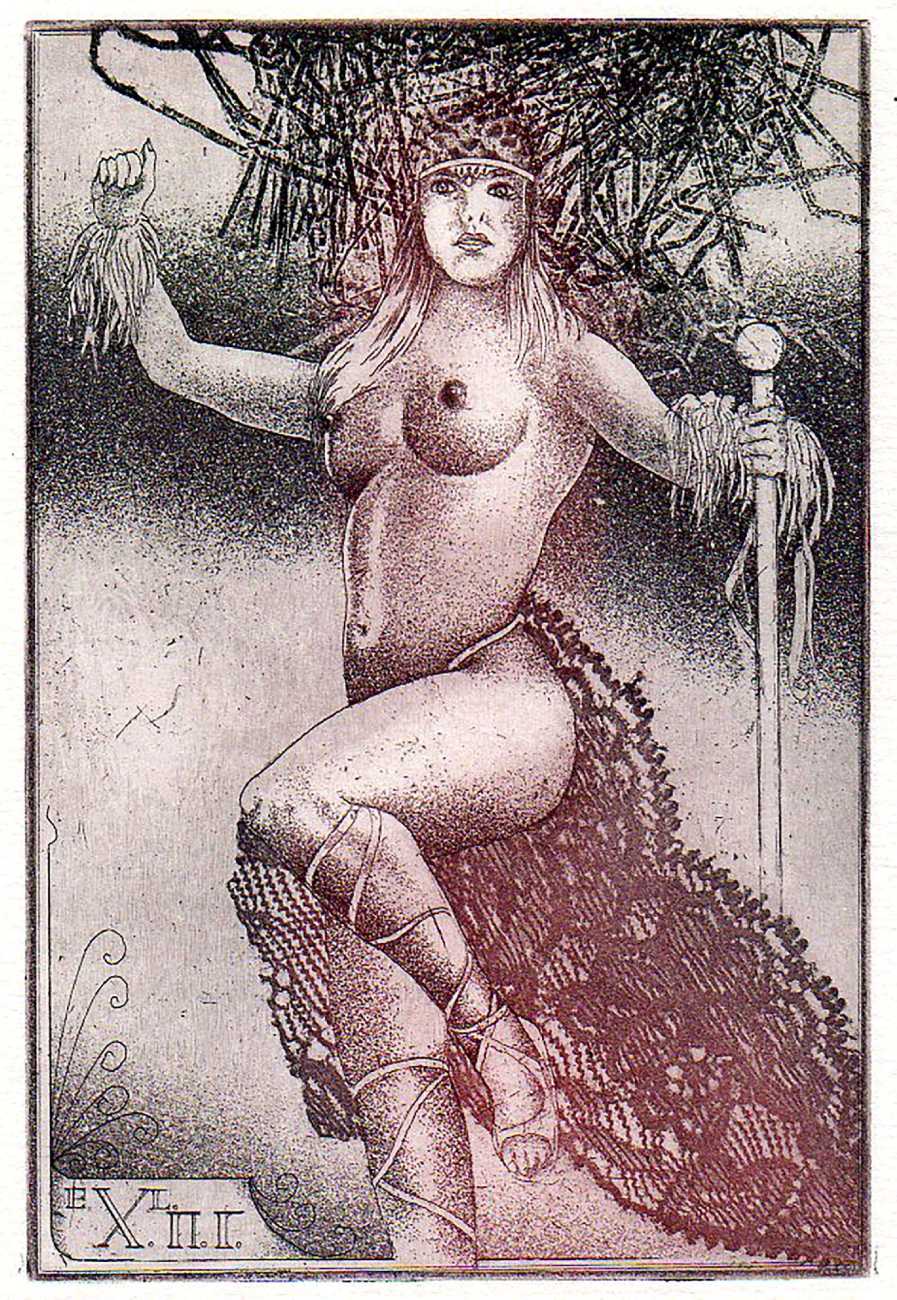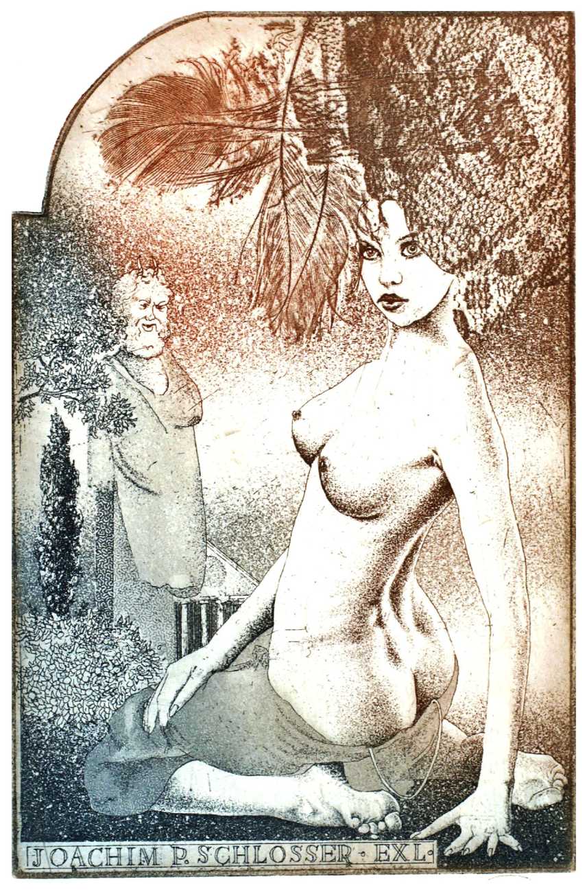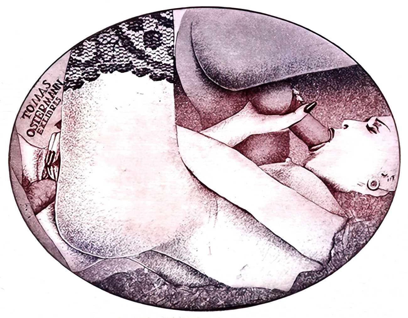 In recent years there has been a definite trend towards erotic subjects for bookplates, partly a throwback to the 1920s and 30s and partly to explore the potential of engraving techniques; it seems a pity that the high-quality results do not extend to more book illustration.