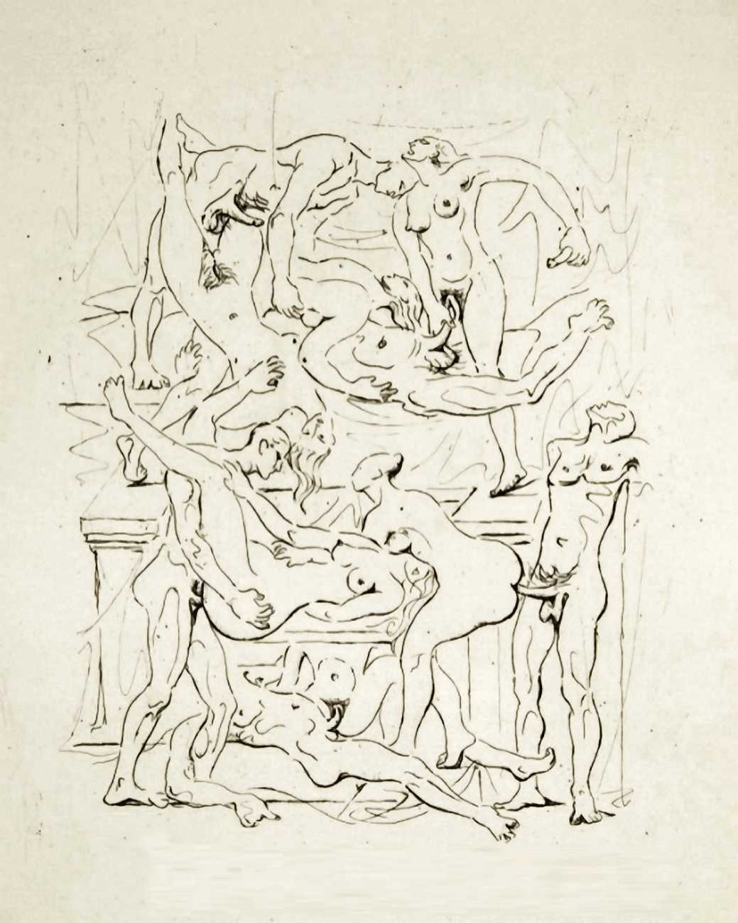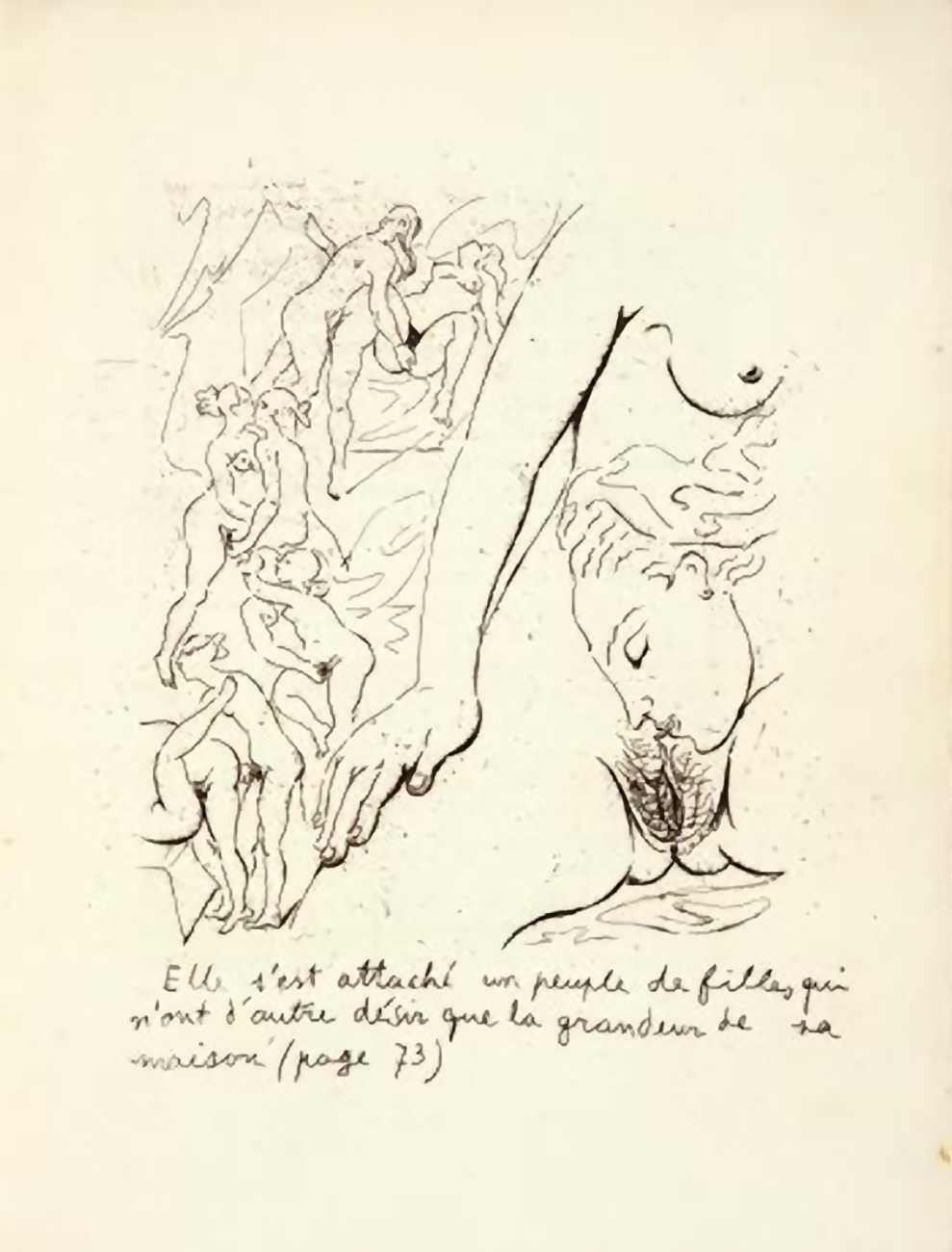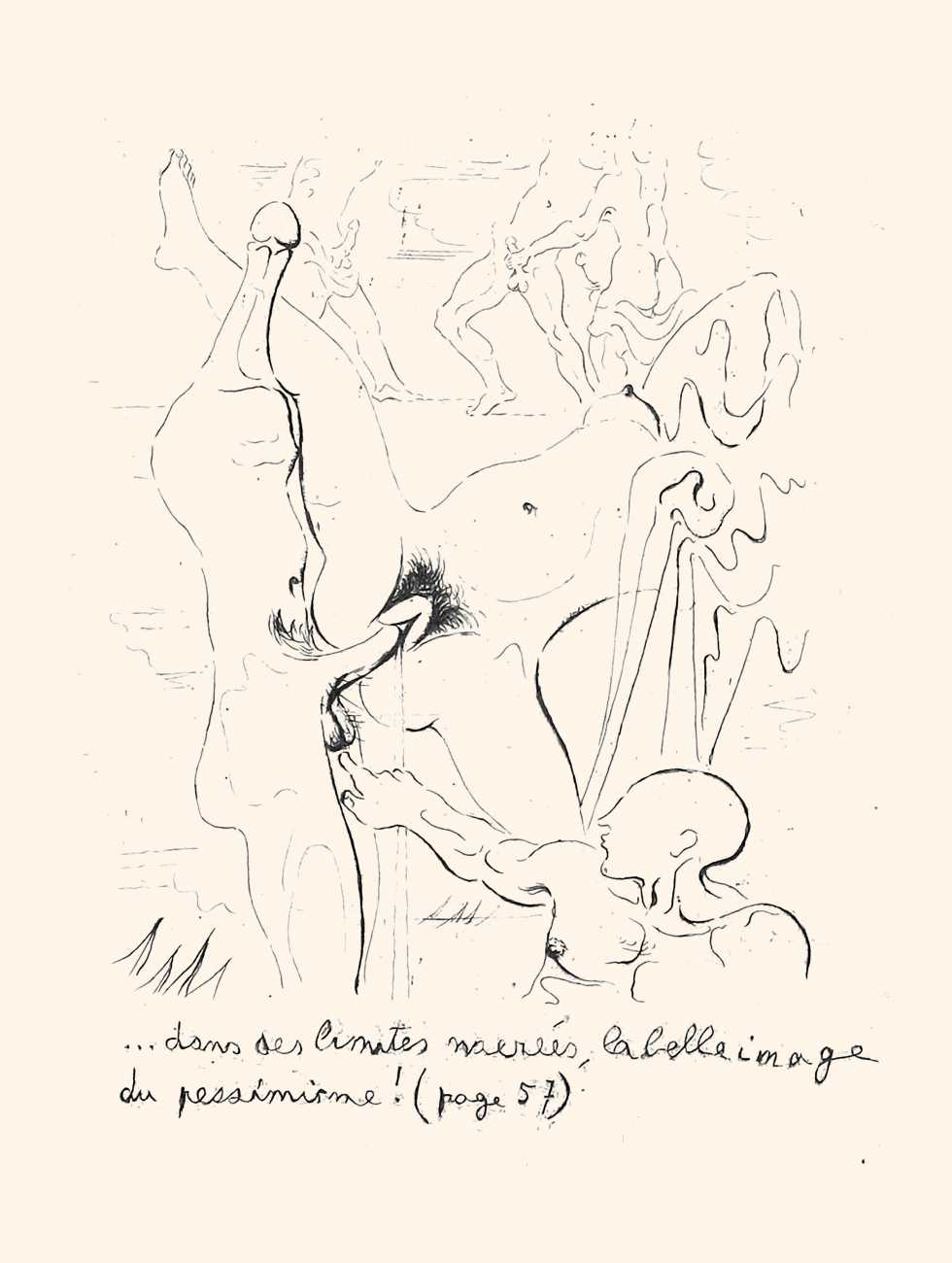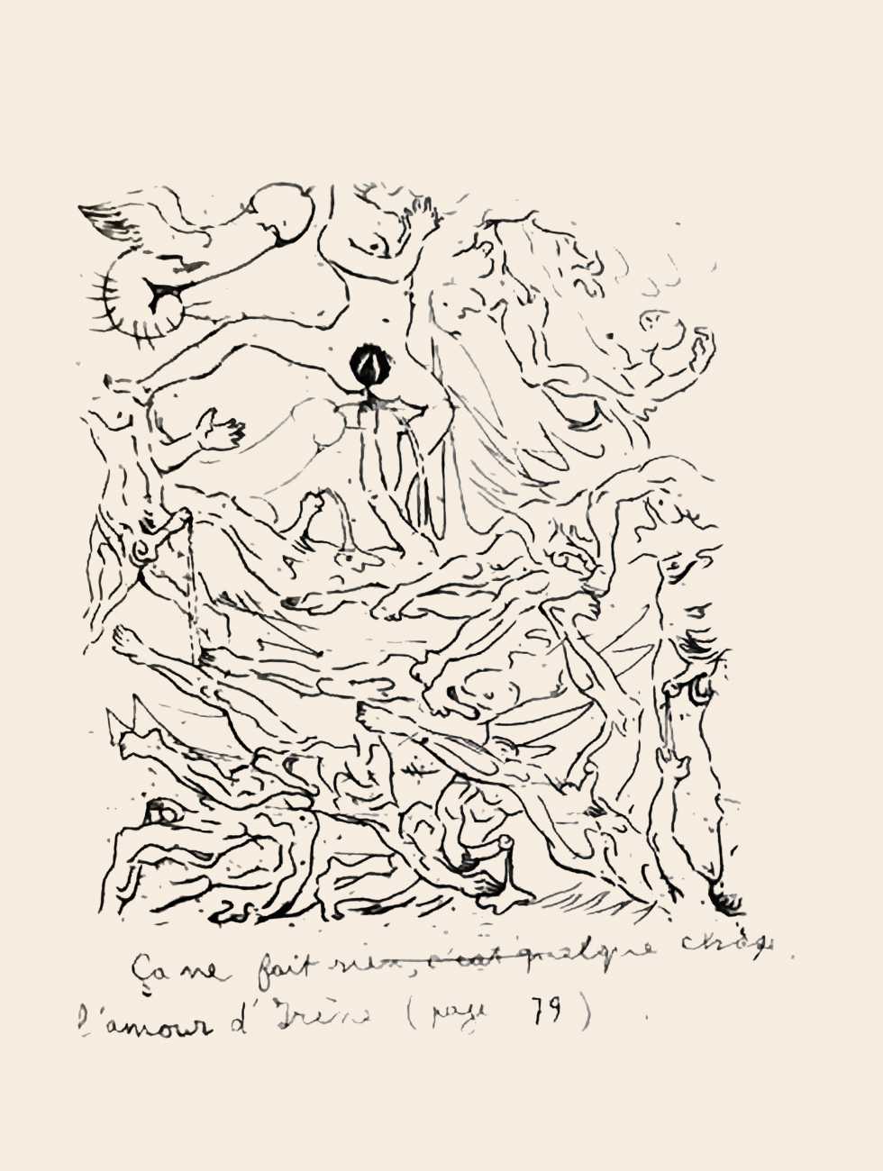 We have said very little about the Masson illustrations; Masson knew Aragon and must have read Irène in manuscript. The five drawings, which are both highly explicit and relate directly to passages in the text, are among his earliest in the free surrealist style that he was to make his trademark.
