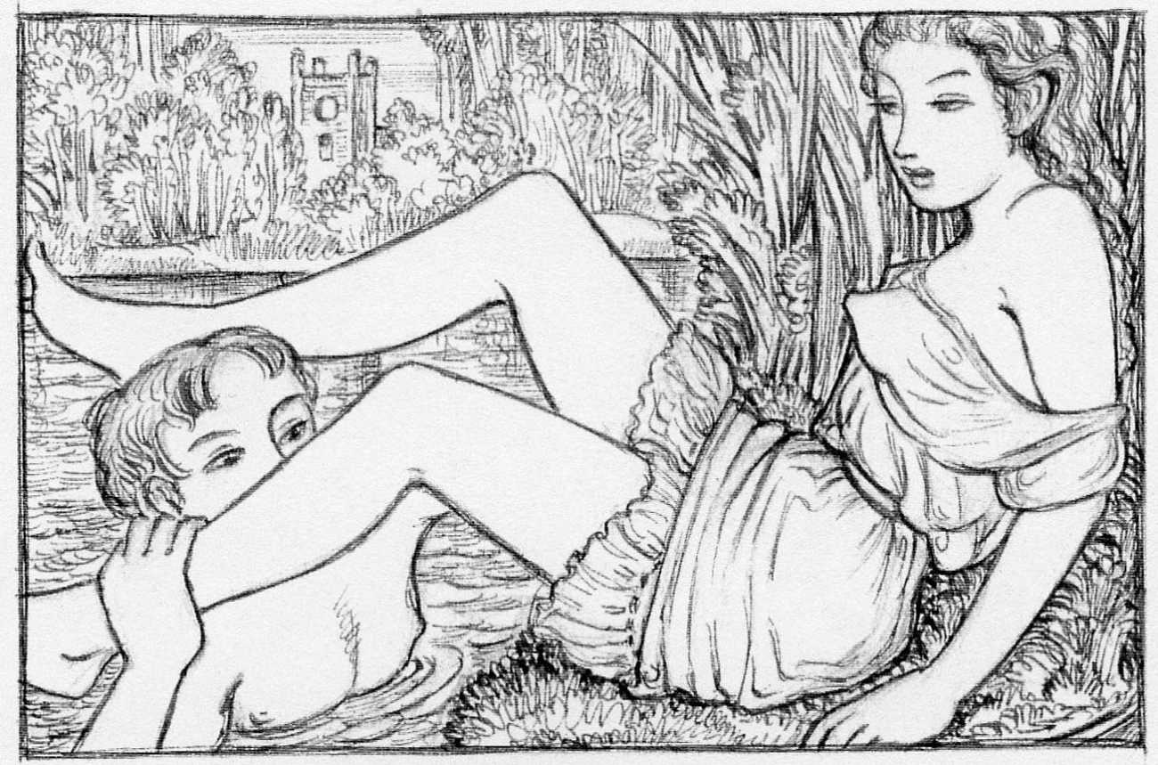 Fortunately, however, in 1940 one of the 215 limited edition copies, number 150, was given to John Buckland Wright, well known to the press’s co-owner Christopher Sandford, to add hand-drawn pencil illustrations for one of their (few) wealthy clients. Buckland Wright rose to the occasion, producing fifty drawings to fill all the available spaces in the book – two full-page, 21 half- or three-quarter page, and 27 vignettes and tailpieces.