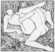 In 1938 the Golden Cockerel Press, a private press in rural England which made handmade limited editions of classic works which were hand-set and the books printed on handmade paper, produced a volume of poetry titled A Lover’s Progress. Unlike many Golden Cockerel titles, which were known for the quality of their illustrations, this collection of erotic seventeenth century lyrics by John Donne, Robert Herrick, John Dryden and others, was not illustrated, which was a pity because the poems, chosen by Nancy Quennell, are some of the most graphic verses in the English language.