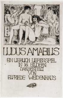 Elfriede Weidenhaus was a talented, reliable and prolific book illustrator, producing material for more than fifty titles, including classics, poetry and travel books. Many had more or less erotic themes, including Daphnis und Chloe, Sappho, Bilitis, and Verlaine’s Amies (Freundinnen), and in later years several of these illustrated books were published by the Zikadenpresse in Erkenbrechtsweiler, which had been founded in 1959 and with which she was closely associated from 1990 onwards. Though she was prolific, her many illustrations became rather stylised and predictable, featuring entwined naked lovers and a large number of unicorns.