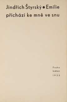 In 2017 Morel Books produced a limited edition English-language version of Emilie, in the same format as the original 1933 Czech publication and in a numbered printing of 300 copies. The translation of Štyrský’s text, by Iris Irwin, comes from this version.