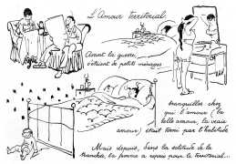 The artist it took to counter all this was primarily a landscape painter, who shows us a camouflaged battery, the entrance to a sap, or, as Carlègle does, a beautiful nurse or a pretty, plump, scantily clad girl being carried to a ransacked bed by a soldier on leave, and we will know that we are in 1916 or 1918. The artist has miraculously rendered what made women beautiful during those years. From Alsace to the Aisne, in every hovel of earth and planks, one could see some of her images, and the art lover’s reveries before his favourite masterpiece doubtless never equalled those fostered by these quick sketches. Each had left behind a wife or a mistress.