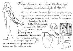 Leafing through this album, I thought of the things an excellent writer might write for a Paris newspaper, the alert qualities that current events demand: a lively, witty verve, a dense truth, cruel criticism, all written with a barely restrained pen topped with a sparkling froth of wit. But the truth is that these drawings are, in their own way, a lively Parisian chronicle. They are pleasant and light, as life should be.