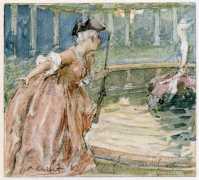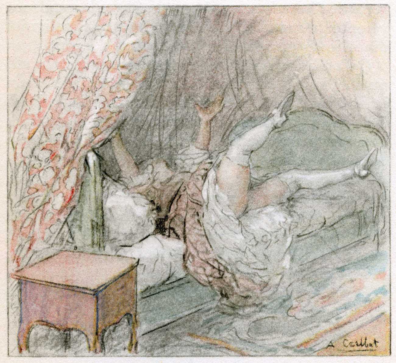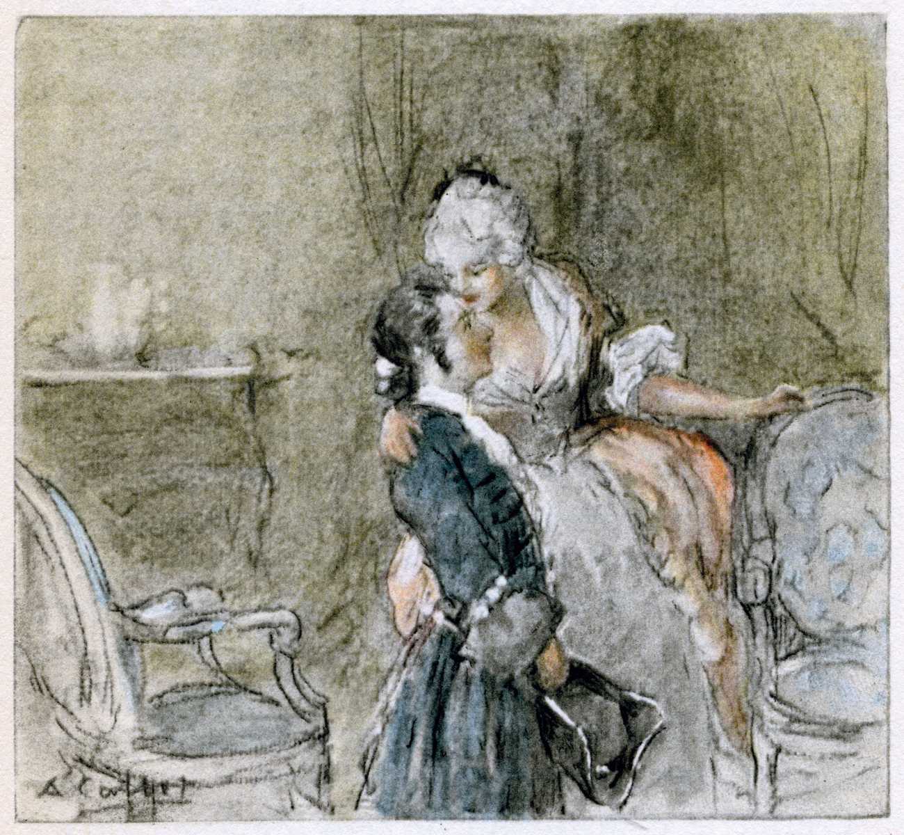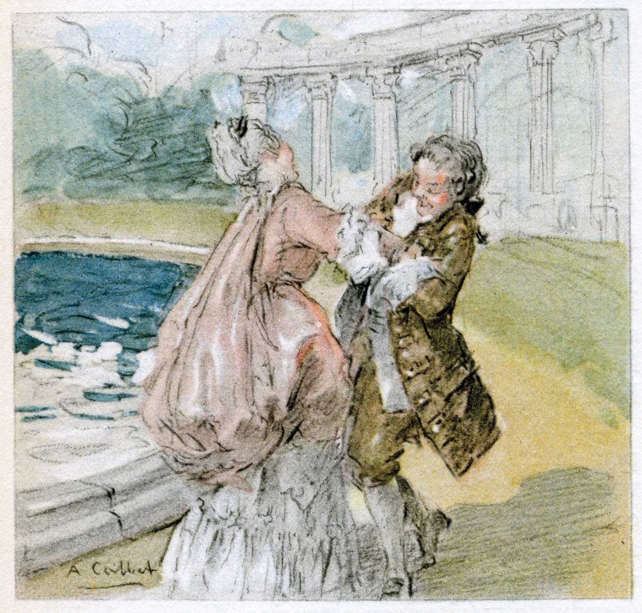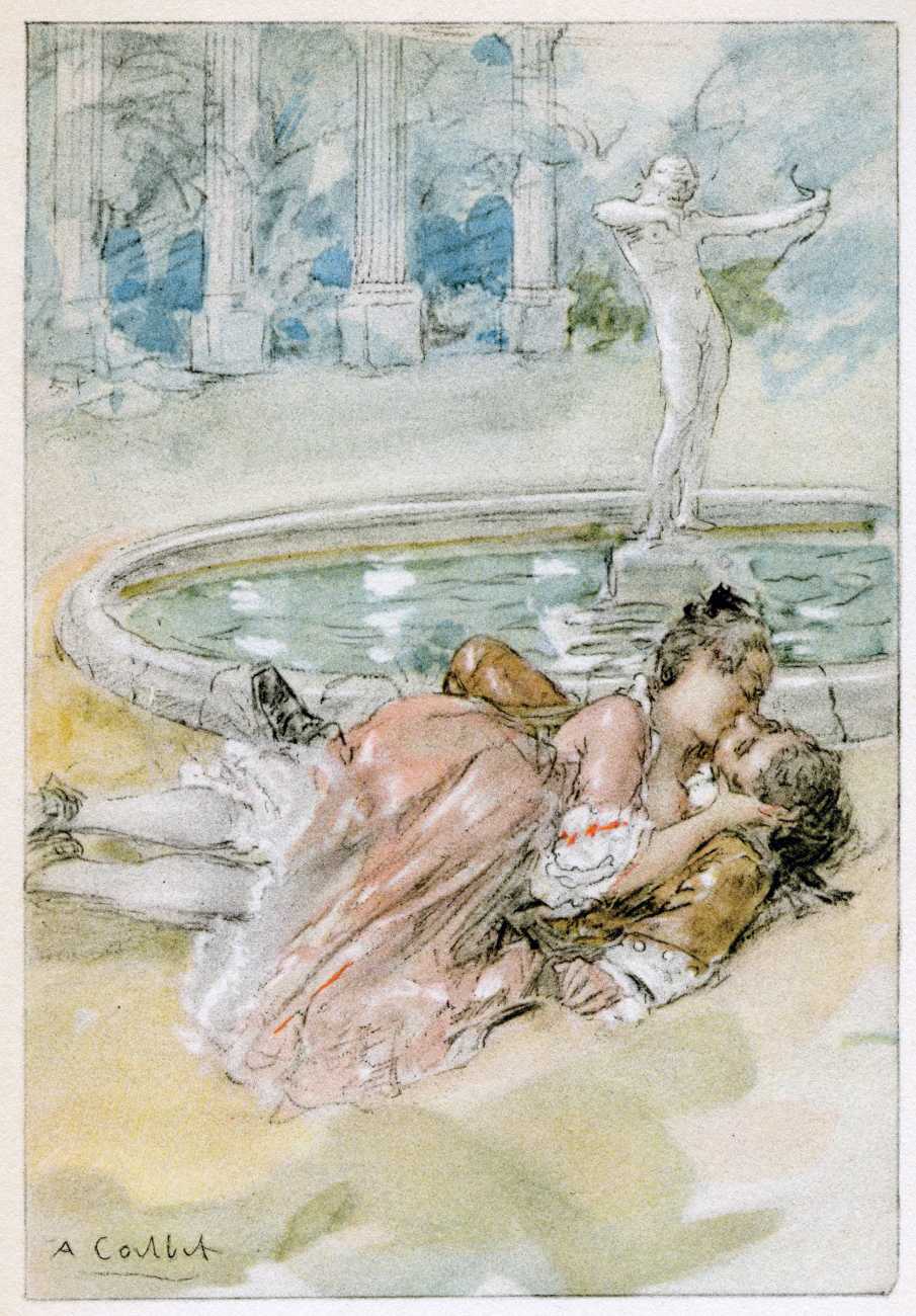 As the years go by, Ninon gives birth to a little girl, Jacquette. It is agreed that the child should be kept away from the shameless spectacle of the statue, so Cupid and the pool are hidden in the heart of a labyrinth. These precautions, however, prove insufficient, so Jacquette’s godmother and housekeeper set about emasculating the statue. Meanwhile Ninon succumbs to the charms of Monsieur de Châteaubedeau, barely out of childhood, to the great despair of the Chevalier Dieutegard, who is secretly in love with Ninon. Dieutegard flees the castle and takes refuge in the hovel of a former gardener who also worships the Marquise. Both come secretly to maintain the labyrinth, the basin and the statue. Much heartbreak and a sudden death punctuate the narrative, but the novel ends with Jacquette’s godfather, the Baron de Chemillé, taking the opportunity to explain what she should know about the role and expression of love in all its forms.