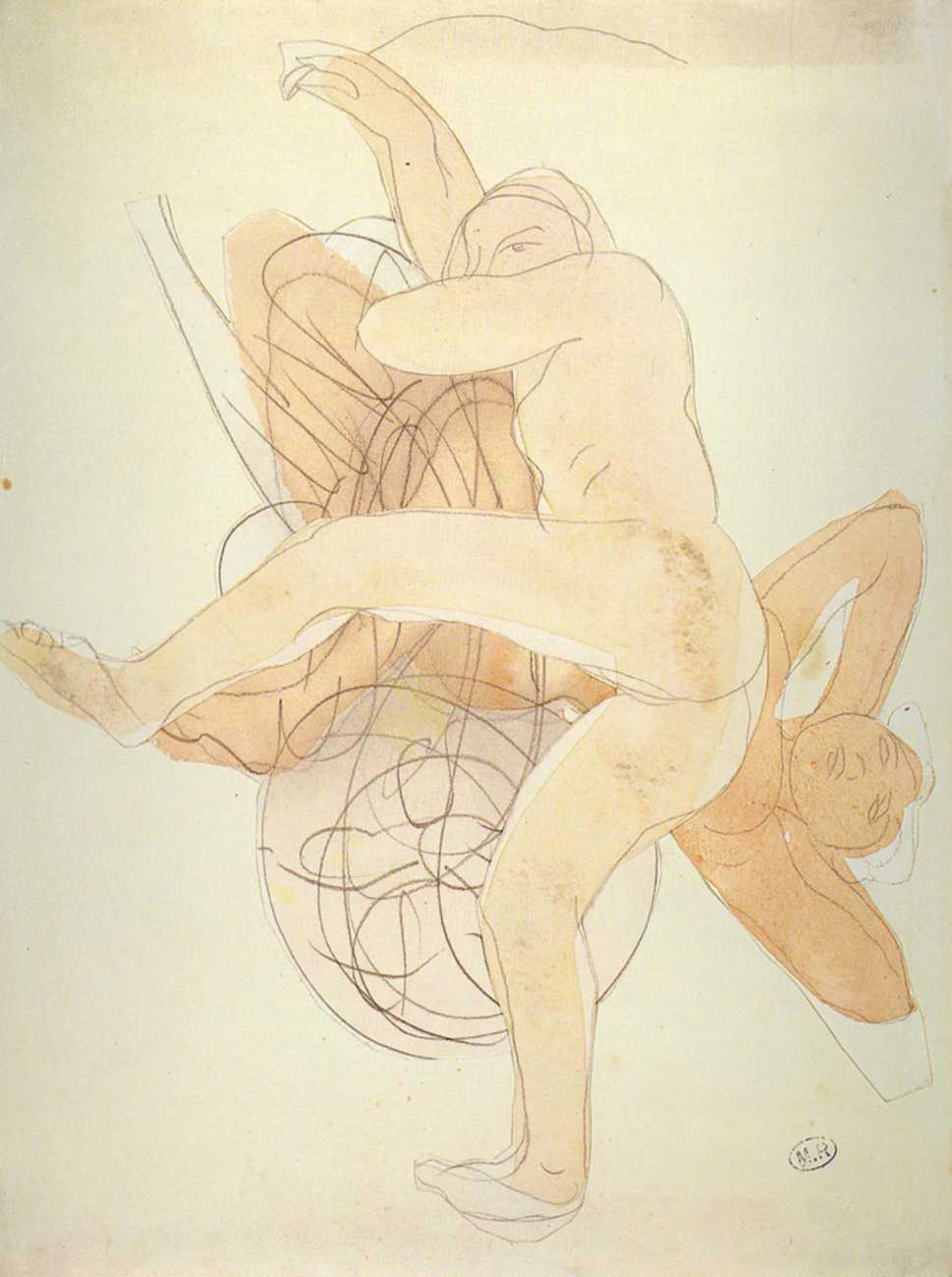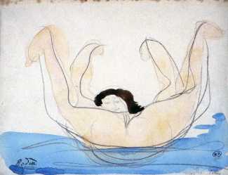 The erotic drawings, based on the pose of one or several models or created by assembling cut-outs into lesbian couples, are an important but are not easily comprehensible aspect of Rodin’s work. Almost all display the genitals very clearly, with no sense of guilt or daring. But if one singles out those with a seeming erotic intent, it becomes clear that they are in a minority: most of the drawings that focus on the genitals in fact explore formal problems. In this long series Rodin continually experimented with the forms which the naked body can generate, as if when left to its own devices it could reveal novel formal structures. Rodin treated the genitals as the pole around which he could explore profiles, contours, surface, mass, modelling, relief, form and the occupation of space. If this experimentation takes on an erotic character, that is due to the endlessly repeated depiction of primary sexual characteristics such as the cleft and sometimes pubic hair, and secondary attributes such as the roundness of a breast or hip, the smoothness of an arm or leg, and nudity, which is sometimes suggested and sometimes displayed. The genitals are the geometric centre, like the point on which a compass rests, around which he organises forms. One drawing illustrates the relatively abstract role of the genitals in his work: looked at one way up, it shows a woman with her legs apart, seen from behind, bent over, with her head just below her genitals and her limbs sprouting from this core; looked at the other way up, the body takes on the form of a lotus flower. In the drawings usually categorised as erotic, not all ‘make use of attraction and desire’ (Didi-Huberman, 1999, p. 25). Many of Rodin’s nudes – some of the vase-women, for example – are not in the least erotic. Nor is Eros, the most fully worked out male nude, an erotic figure in itself: it is a study of leaning back so that the body forms an arc, of tension, even of spasm – despite the ‘erotic’ combinations with other figures that we have already noted, where the link is always via the genitals, but in a semi-humorous way, since this was not the focal point of the combination.