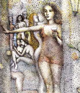 Here is Mark Price’s explanation of this series of coloured drawings: ‘In the Time to Come is a prophetic series of drawings suggested by the changes we are experiencing in our sexual landscape, as we come into the brave new world predicted by Aldous Huxley. By prophetic I mean that in the fictional sense and just for fun, it is more ‘what if?’ than ‘what’s to be’. I don’t think you have to be gifted with foresight to see that our culture has been opening up sexually and will continue to do so. That this opening up has been driven by art and fantasy much more than physical desire is clear to me, so in the interest of doing my part I have come up with these drawings and captioned them to tell a story about the time to come, and its changing sexual landscape.’