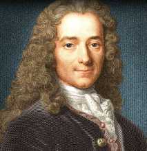 Voltaire (1694–1788), whose given name was François-Marie Arouet, was an enlightenment-era writer, philosopher, satirist and historian. Famous for his wit and his criticism of Christianity and of slavery, he was a vociferous advocate of freedom of speech, freedom of religion, and the separation of church and state. He used his novels and stories to challenge established norms of society, religion and human relationships.