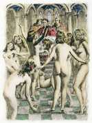 The five-volume Bécat-illustrated Voltaire was published by Paris-based Éditions Arc-en-Ciel, in a limited, numbered and boxed edition of 2,200 copies, the first 200 of which also included a complete set of engravings in black to complement the coloured versions.