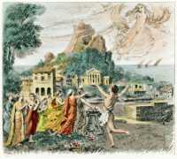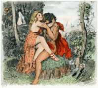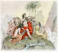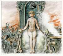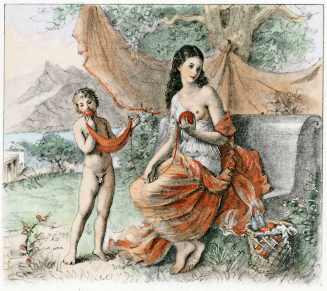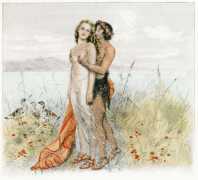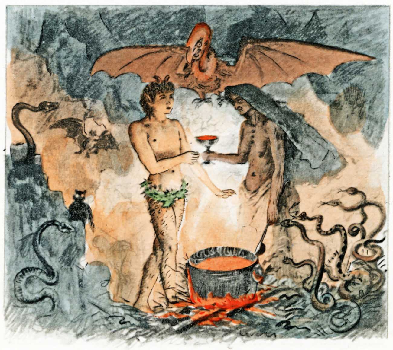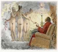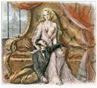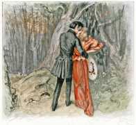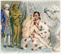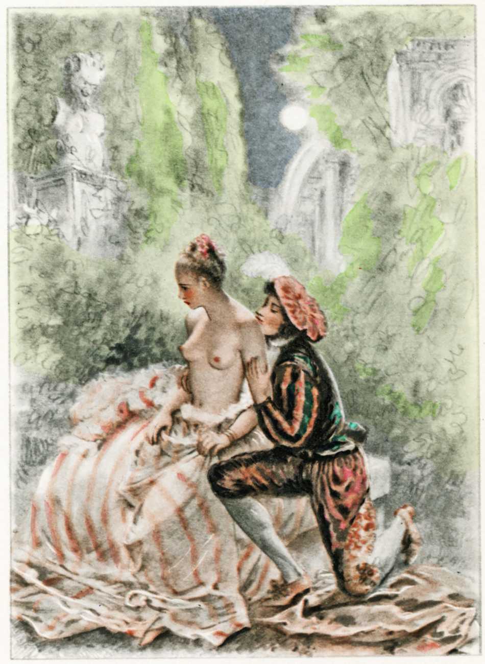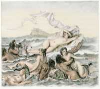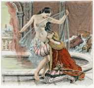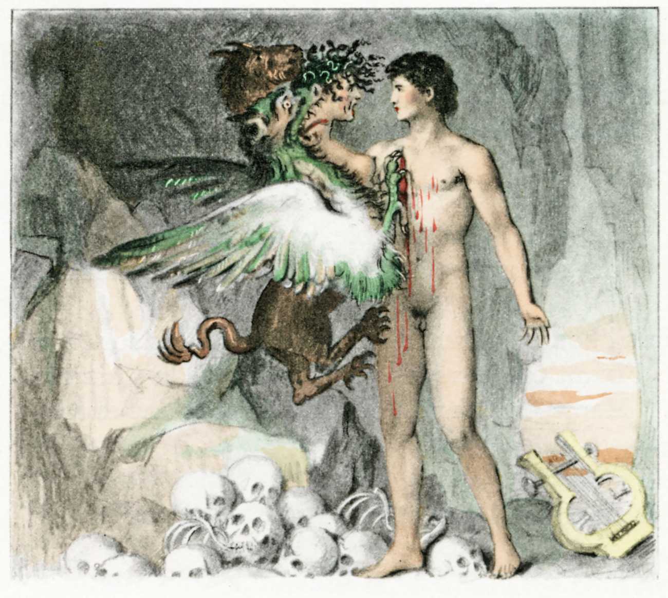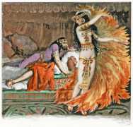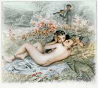 This illustrated three-volume set of Samain’s works is one of the most attractive, including the expanded Au jardin d’infante, Le chariot d’or (The Golden Chariot),Symphonie héroíque, Aux flanc du vase (On the Side of a Vase), Poèmes inachevés (Unfinished Poems), and the play Polyphème. Published by the prestigious Paris publisher H. Piazza, the elegant design and typography is somewhat let down by the poor colour reproduction of the sixty Bécat illustrations accompanying Samain’s text, but it still gives us a clear visual sense of the poet’s artistic sensuality, with every opportunity taken to introduce naked flesh into as many images as possible.
