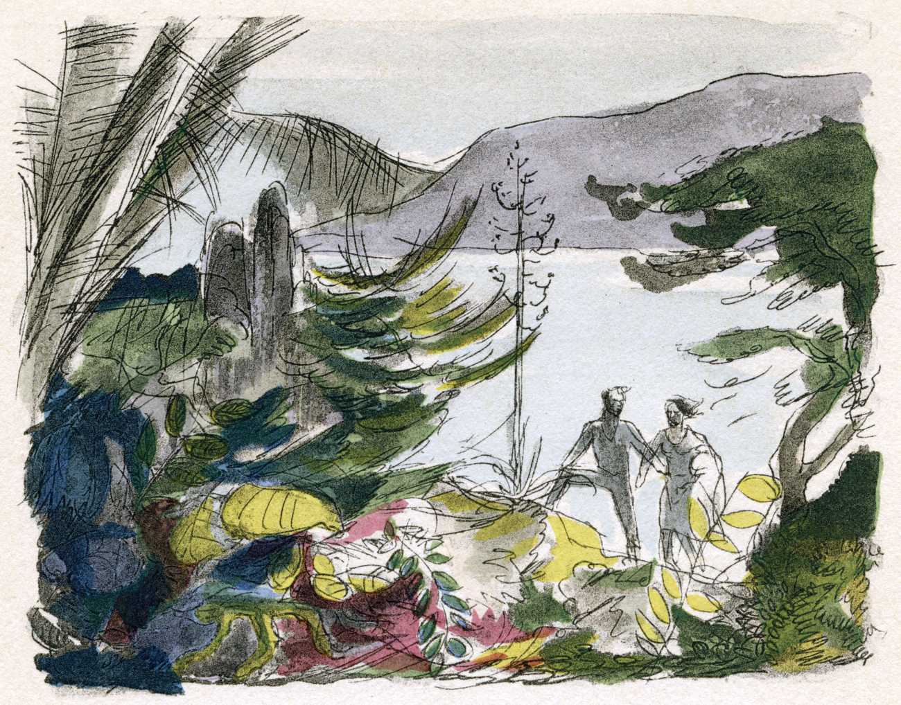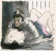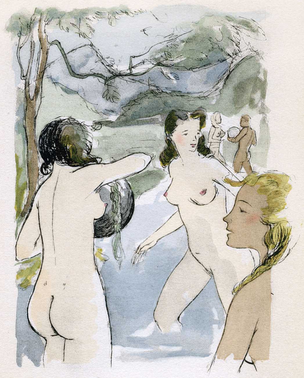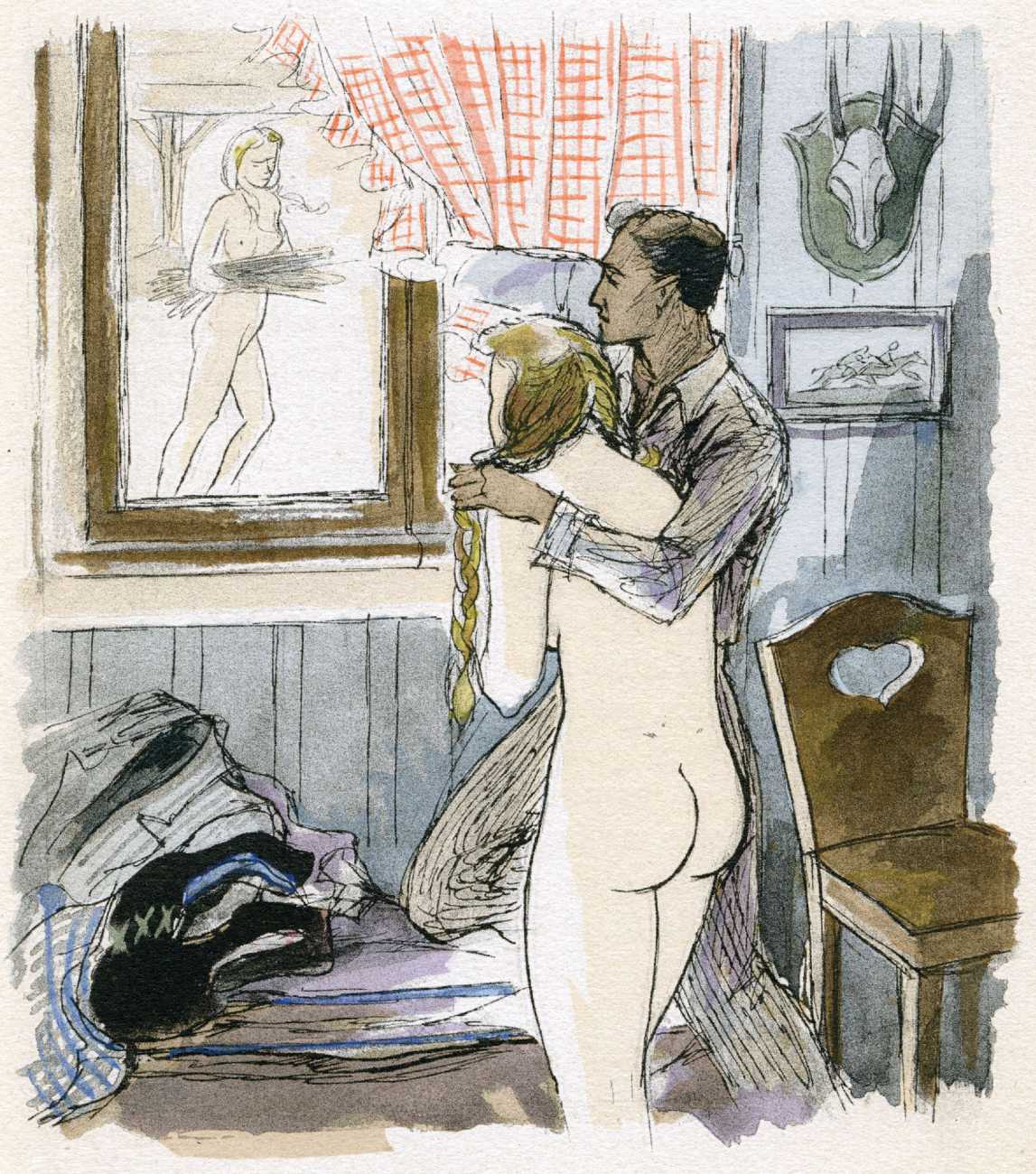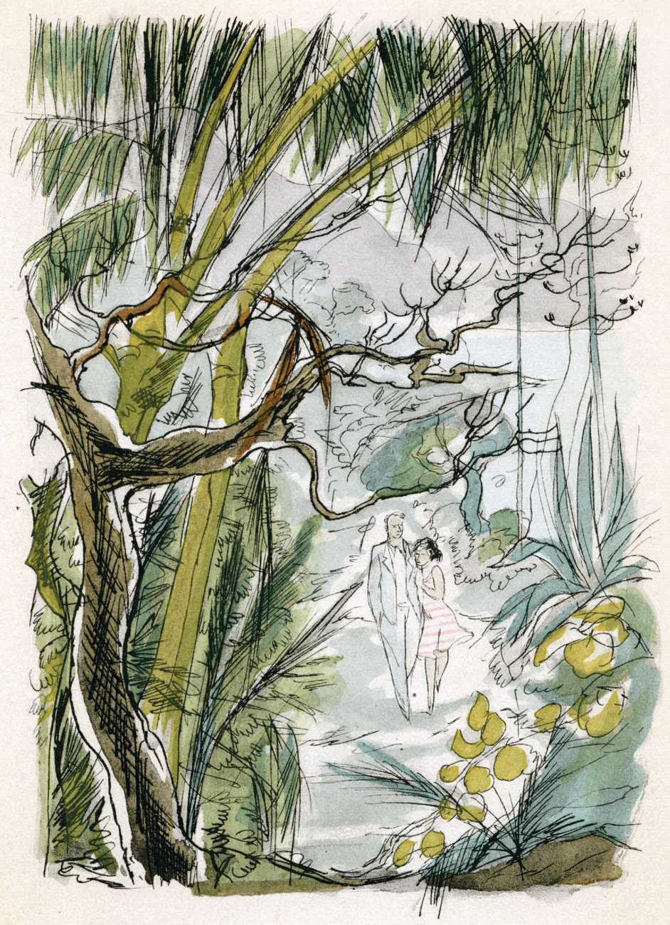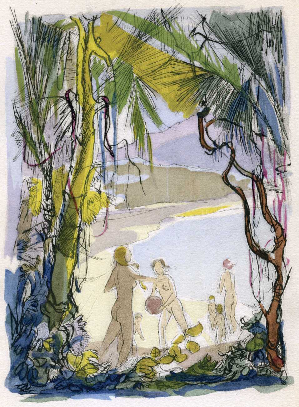 Le sérail (The Harem) was first published in 1931, and centres on a painter, Michel Faulcroix, who abandons his respectable Parisian banker life to become part of a Mediterranean paradise, a kind of erotic commune, with his brother Bernard and three beautiful young women, Jacqueline, Lore and Irene, all living and loving together. The three women become Michel’s ‘harem’, pursuing a pact of group marriage and shared sensual experiences.