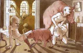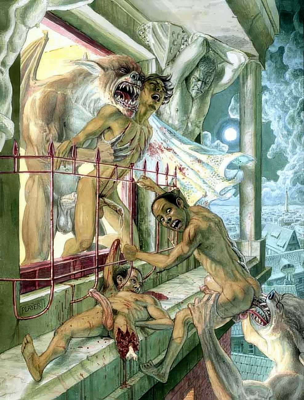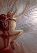 Stephen Player’s artwork frequently straddles a fine line between ’fantasy’ and ‘erotica’, acknowledging the ambiguous sensuality of the world of imagination. Every image in this selected portfolio of Player’s work includes a sexual element of some kind, yet in none is the sexuality central to the complex imagery, demonstrating on how many levels good works of art can be interpreted.