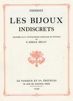 The Bécat-illustrated Les bijoux indiscrets was published by Le Vasseur, Paris, in a limited, numbered and boxed edition of 511 copies.
