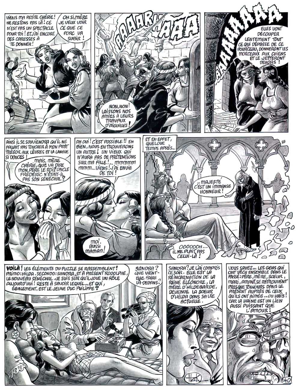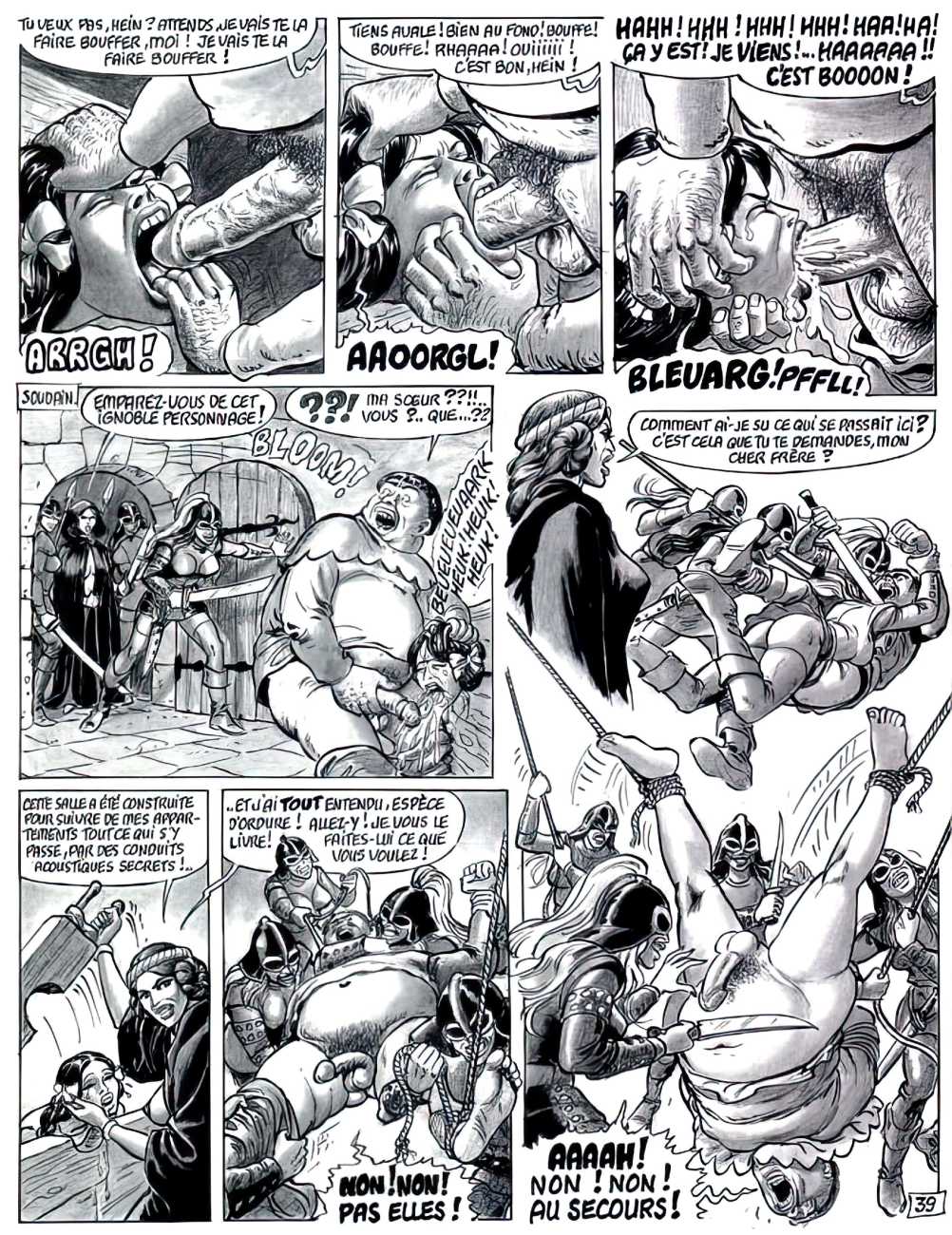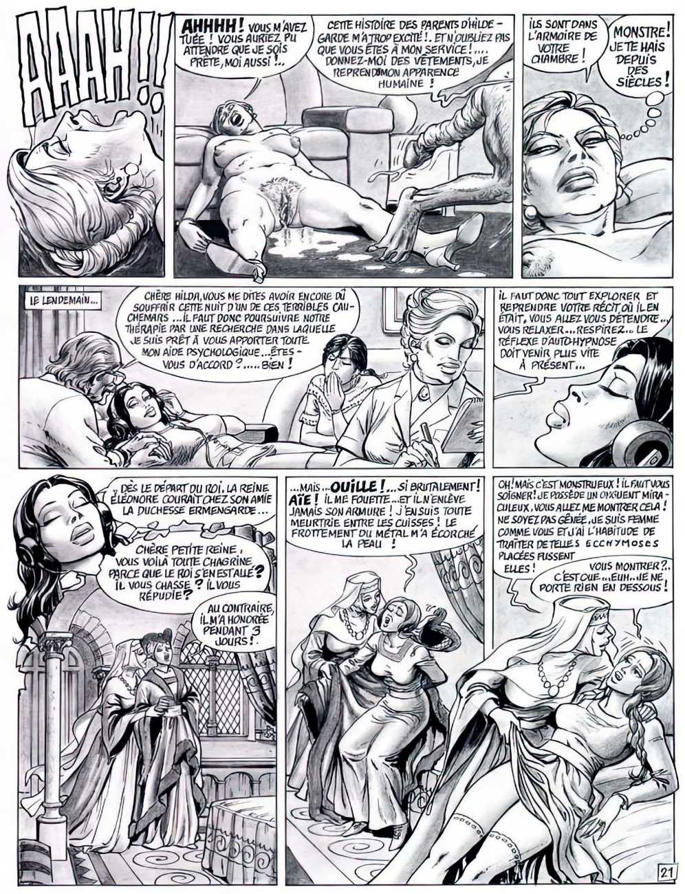 Set very much in the Sadean tradition, Hilda’s experiences are horribly but brilliantly brought to life by Bernard Dufossé’s pen, here under the pseudonym of Hanz Kovacq. Nowhere else will you find a vocabulary as imaginative as his ‘Aarrogll! Horgh! Harch! Harf!’