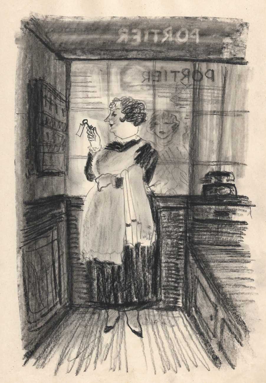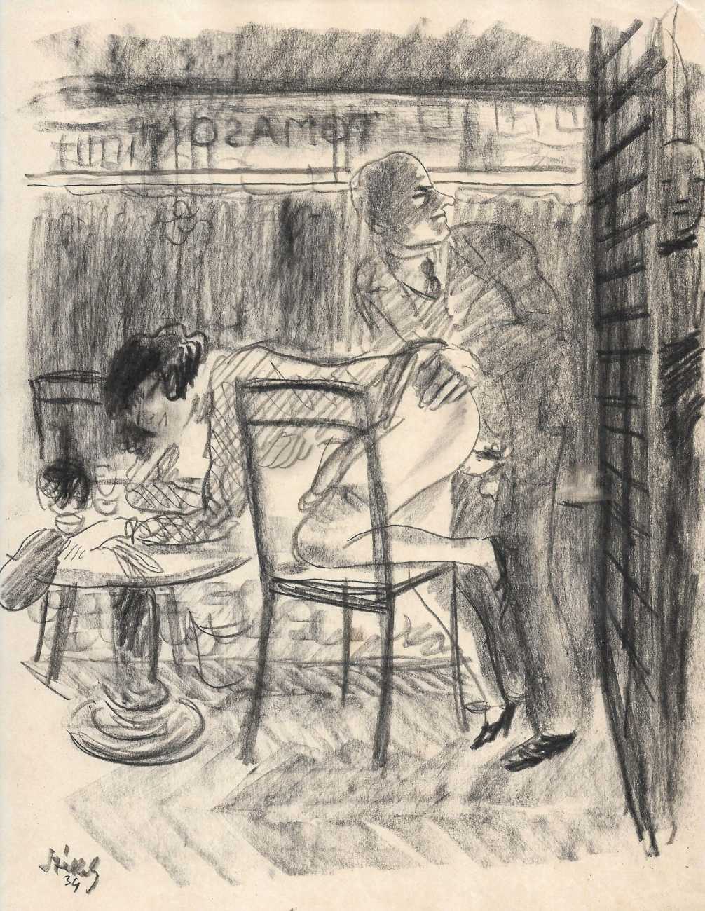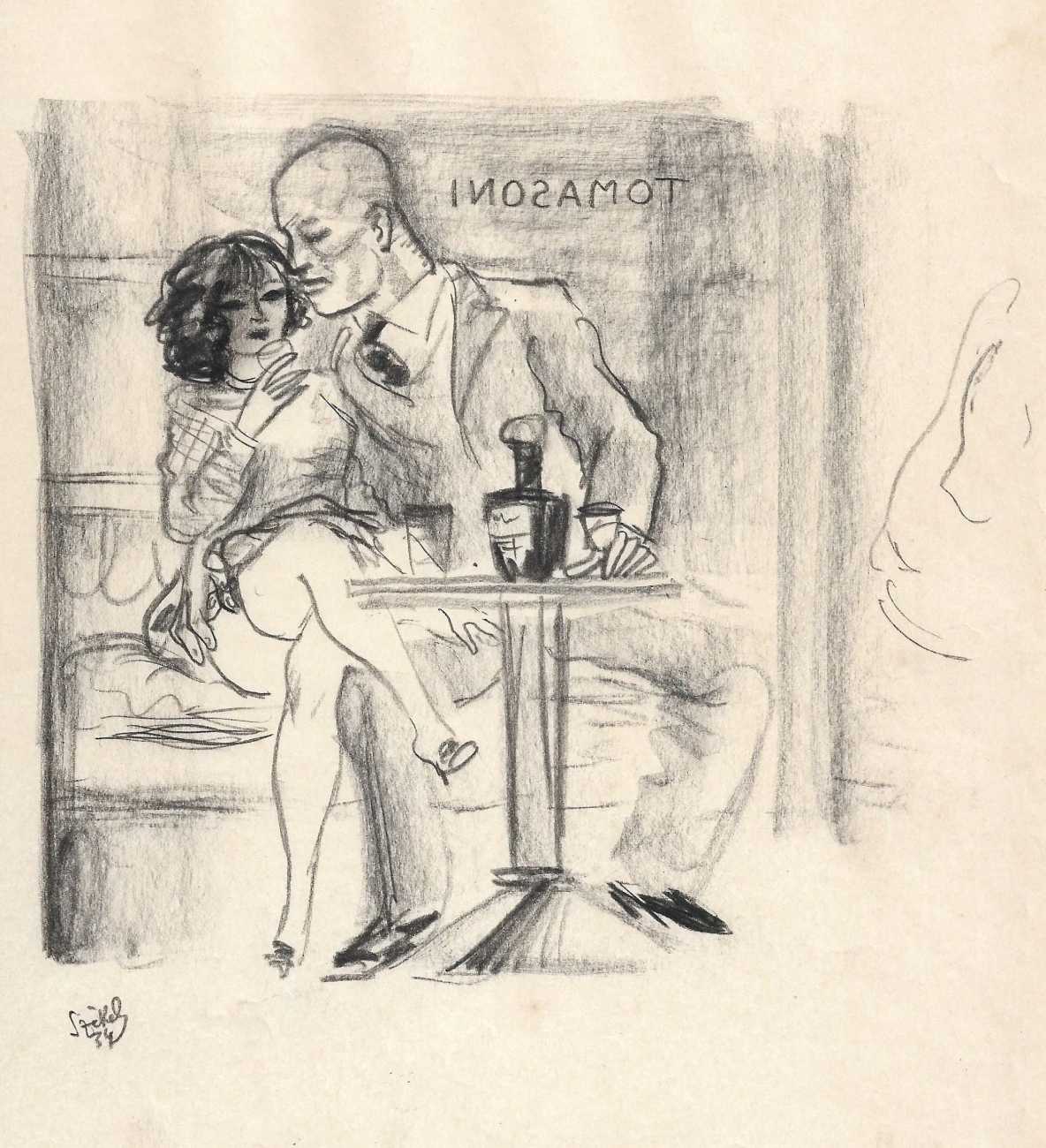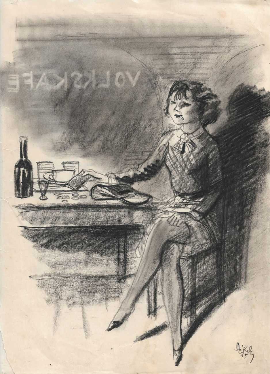 This sequence of drawings is set in a very identifiable 1935 Vienna – Volkscafé was at Getreidemarkt 13, close to the Naschmarkt; Rasper & Söhne, a well-known porcelain and glass dealer, was at Graben 15; and ‘Café Tomasoni’ was the alternative title to the 1935 operetta-style film Königswalzer, starring Paul Hörbiger and Curd Jürgens.