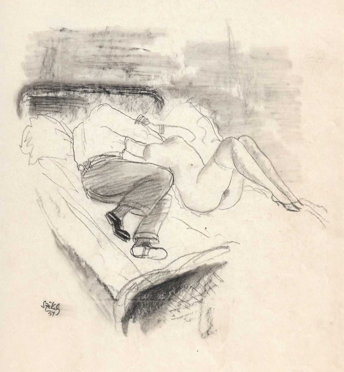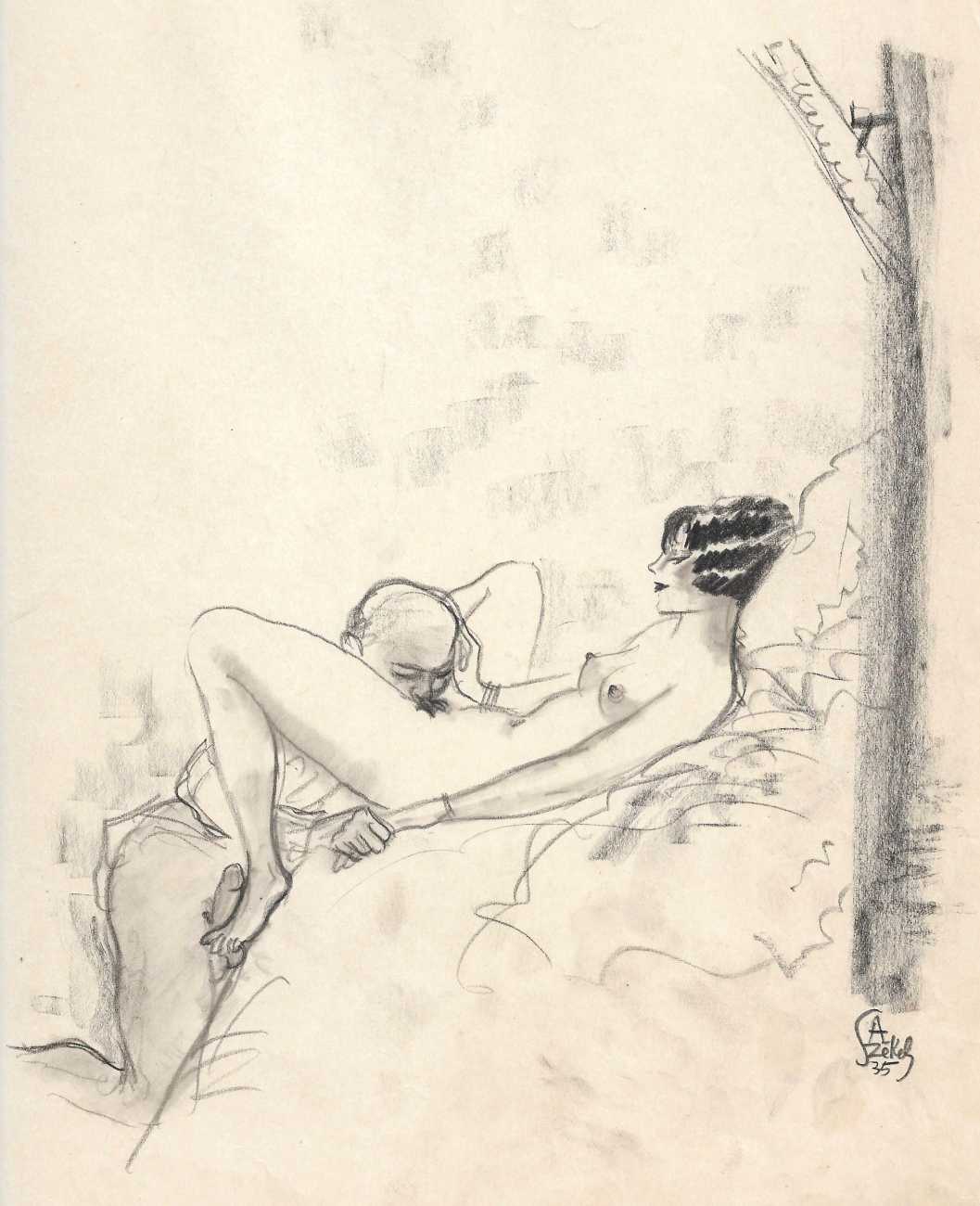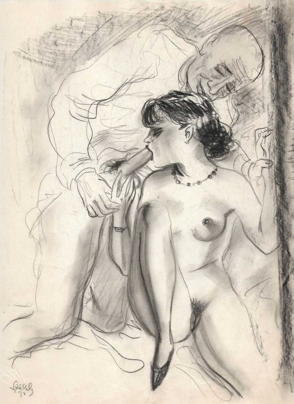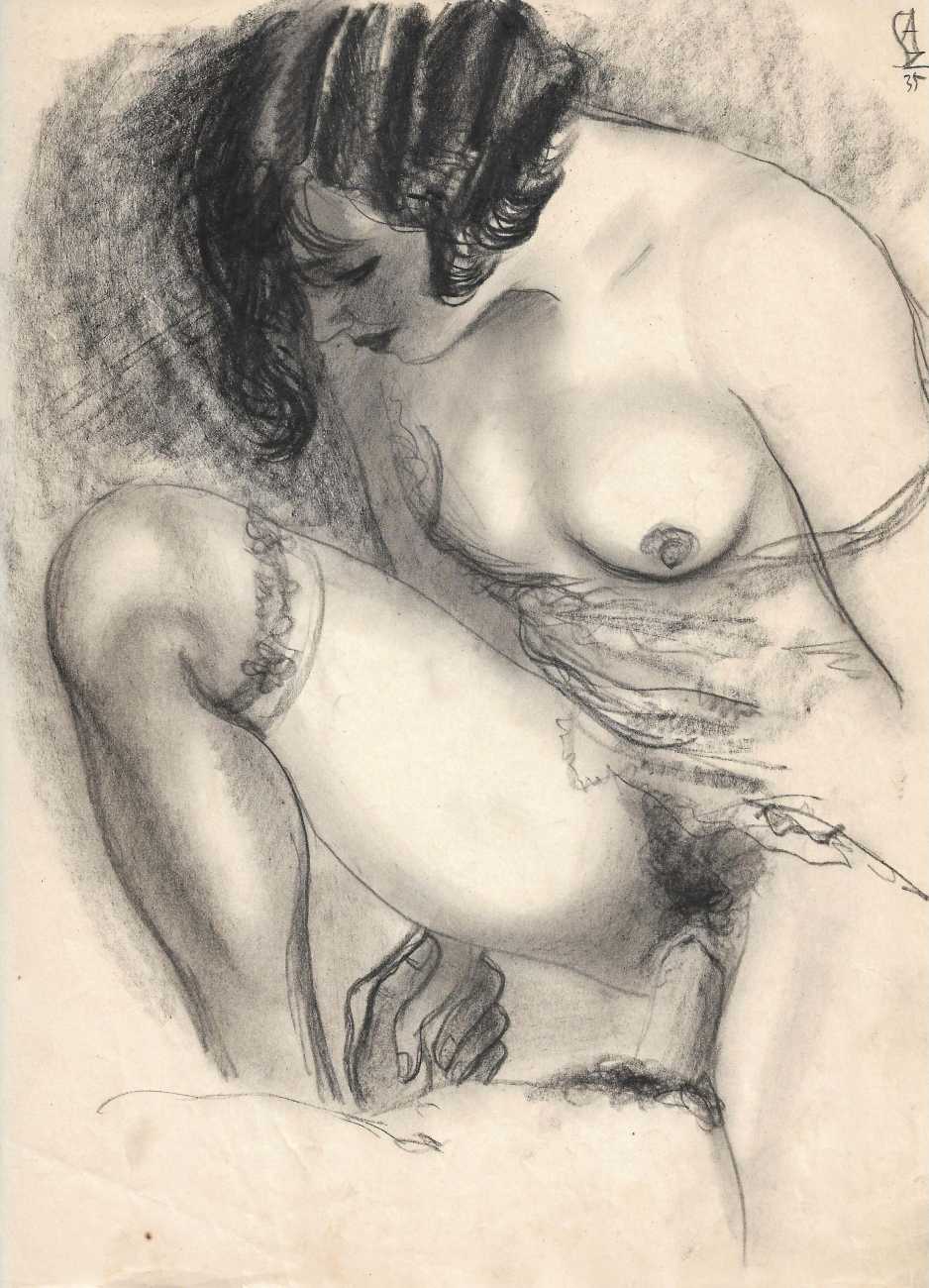 The story is familiar, repeated by Szekely in Ein Pariser Abenteuer (1941) and by Rojan in Idylle printanière (1936) – an unexpected but rather delicious encounter with a young women who, to the artist’s surprised delight, is more than willing to explore the depths and breadths of shared intimacy. To what extent the narrative is in any way autobiographical is left to the viewer’s imagination.