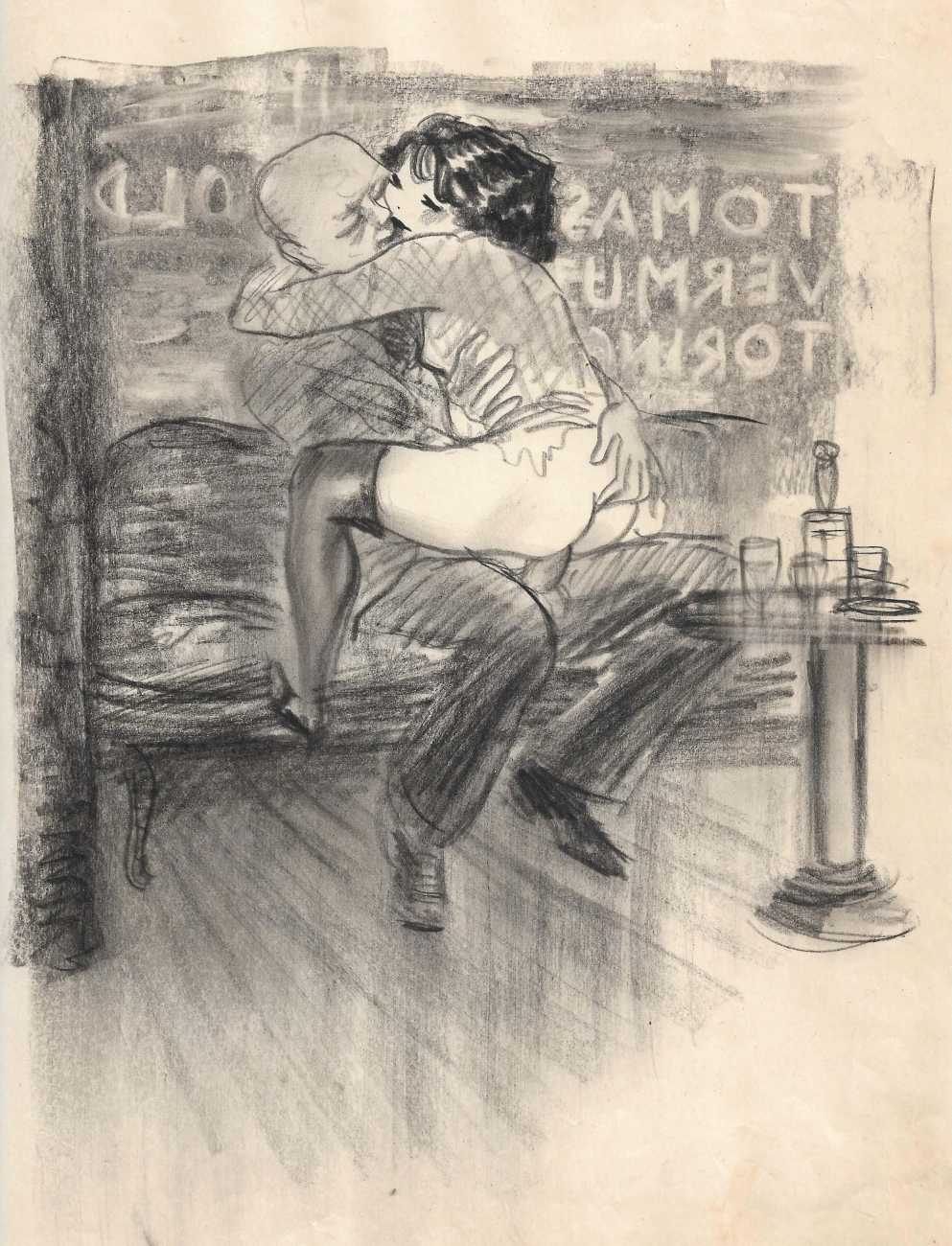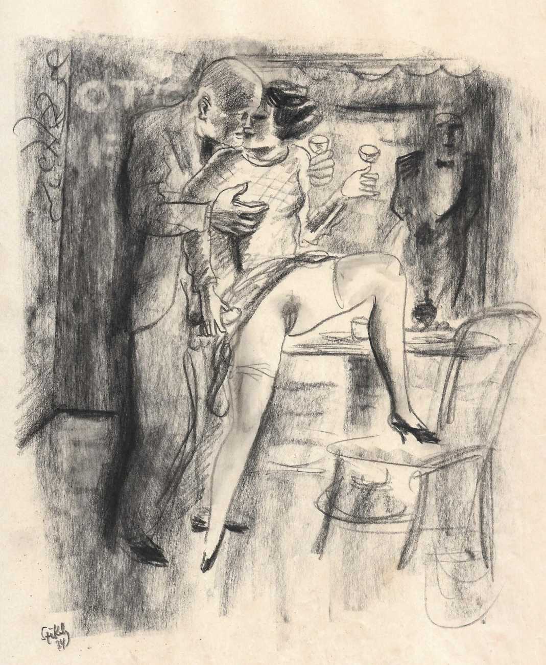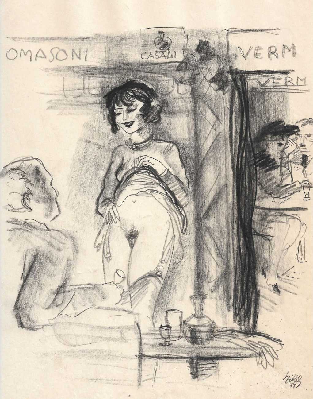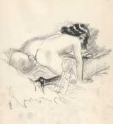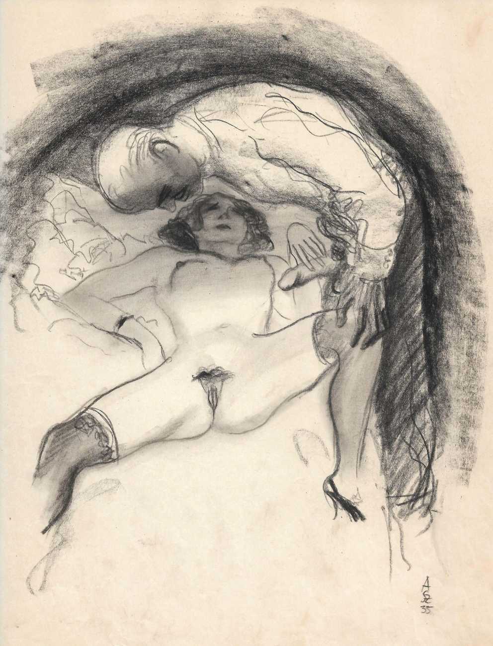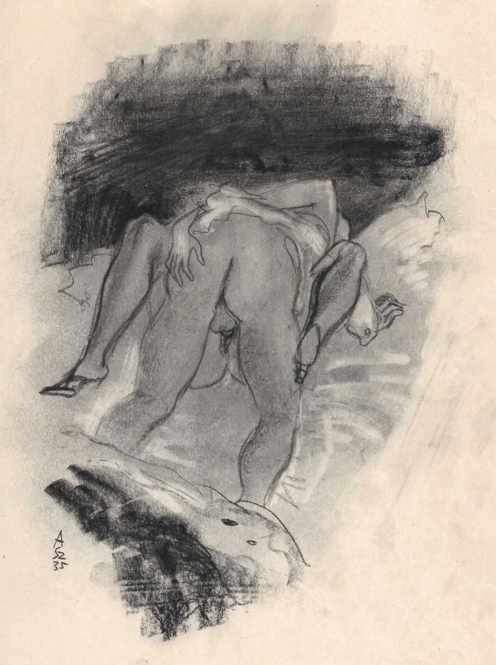 The story is familiar, repeated by Szekely in Ein Pariser Abenteuer (1941) and by Rojan in Idylle printanière (1936) – an unexpected but rather delicious encounter with a young women who, to the artist’s surprised delight, is more than willing to explore the depths and breadths of shared intimacy. To what extent the narrative is in any way autobiographical is left to the viewer’s imagination.