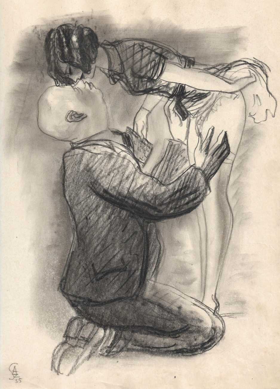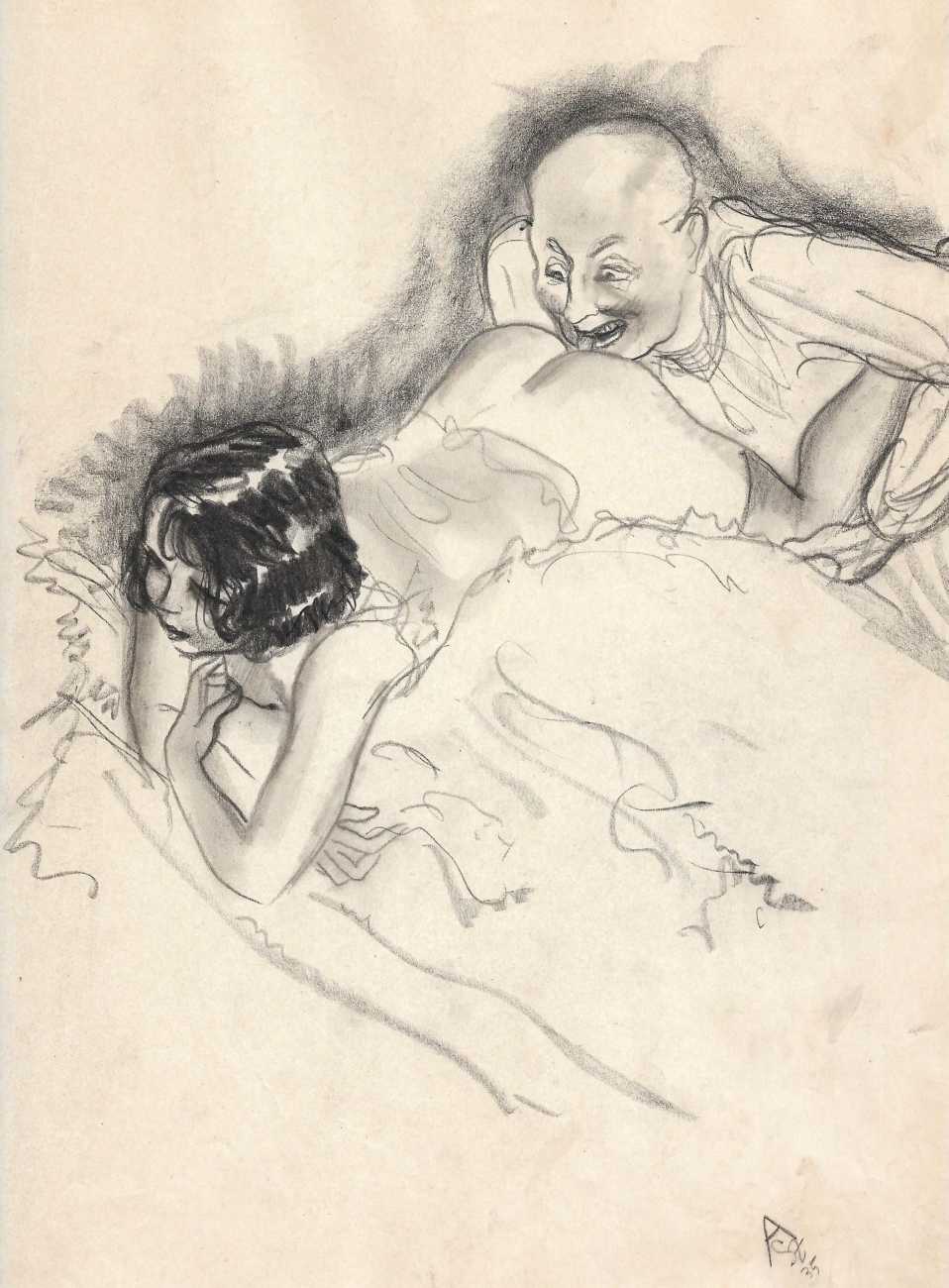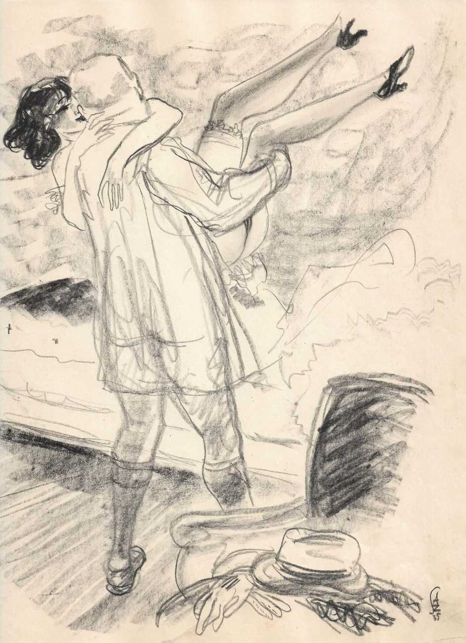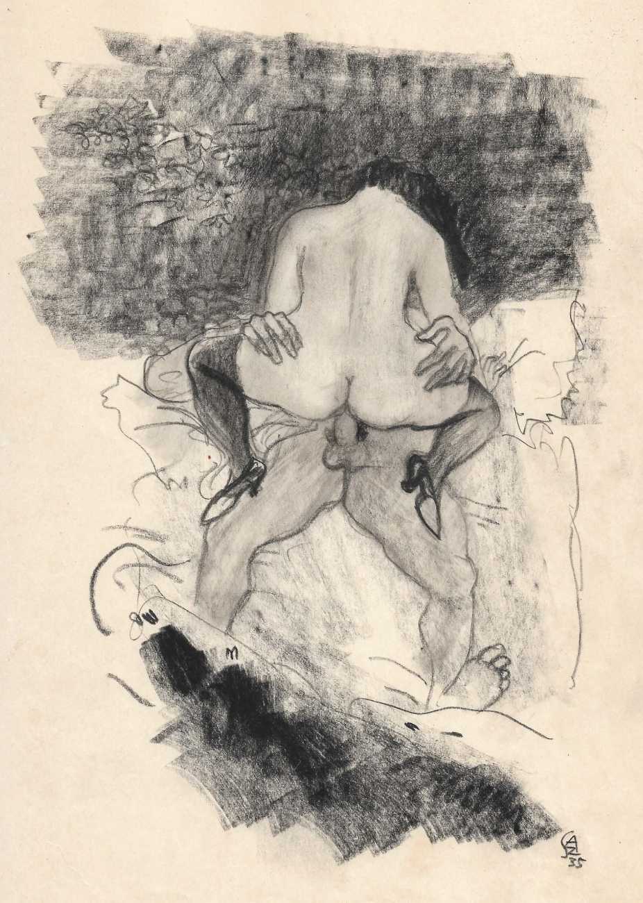 The story is familiar, repeated by Szekely in Ein Pariser Abenteuer (1941) and by Rojan in Idylle printanière (1936) – an unexpected but rather delicious encounter with a young women who, to the artist’s surprised delight, is more than willing to explore the depths and breadths of shared intimacy. To what extent the narrative is in any way autobiographical is left to the viewer’s imagination.