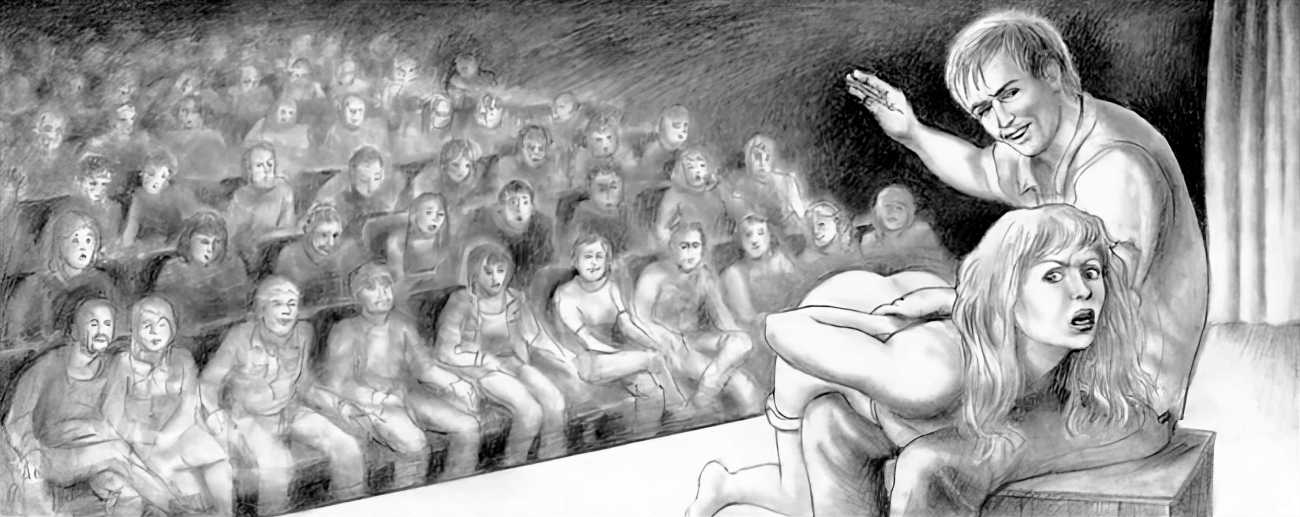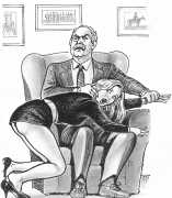 After the success of the inclusion of many of Lynn Paula Russell’s trademark spanking drawings in the 2000 Erotic Print Society’s overview of her work, A Sexual Odyssey, four years later the EPS reproduced nearly all of her previously unpublished illustrations from Janus and Februs in Painful Pleasures, an anthology which also included several of Paula’s editorials about corporal punishment, and a short story, ‘Rump Stake’, by Sarah Veitch.