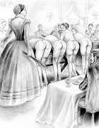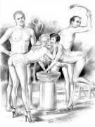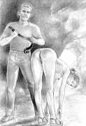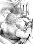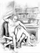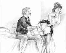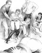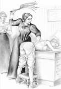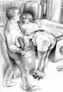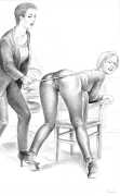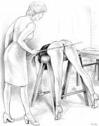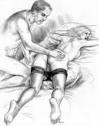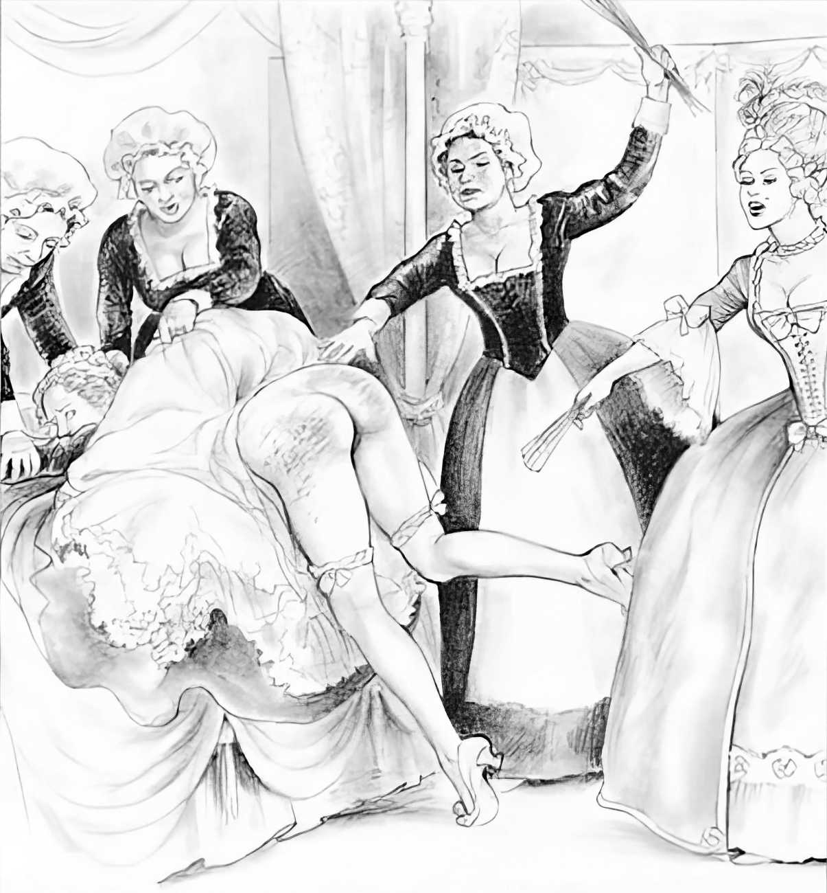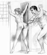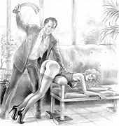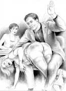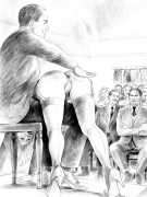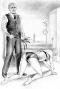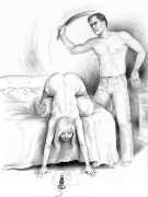 So what is it that exerts such a powerful erotic force in these marvellous drawings? The most obvious explanation is the sense of delicious anticipation and those moments of sweet surrender that occur when we give ourselves over, trusting yet apprehensive, to the whims and fancies of the dominant partner in our relationship. The punishment itself and its attendant pain can be, through direct physical stimulation, another path to sexual gratification.