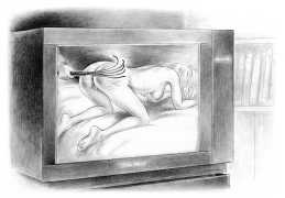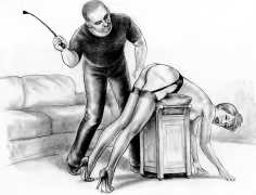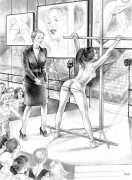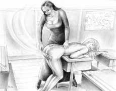 Her drawings, unashamedly erotic and full of the energies and emotions of sex, appeal to a sophisticated audience. This audience is knowledgeable about the world of sadomasochism and corporal punishment and appreciative of the way her realistic, emotive style carries them effortlessly into a realm of fantasy that is as rare as it is wonderful. But they would be less able to escape to this world were it not for, in addition to an extraordinary imagination, the fine draughtsmanship and the innate sense of design and composition that is always present in Paula’s art. In this book we are fortunate enough to find a collection of some of her most outstanding work that portrays the sexual fetish of corporal punishment, or CP. In Painful Pleasures: The Erotic Art of Lynn Paula Russell, the focus is on her drawings commissioned to illustrate Februs, and in some cases, Janus, its sister magazine.