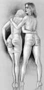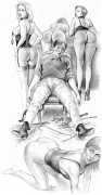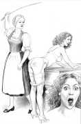 It’s with great pleasure that the Erotic Print Society publishes another anthology of Lynn Paula Russell’s graphic work. This group of drawings is an essential addition to the books, dedicated to her art, that are already in print as it completes, more or less, a record of all the commissioned work she drew for Februs magazine. Februs is a magazine dedicated to corporal punishment, and has benefited over the years from Paula’s editorship and artwork.