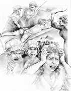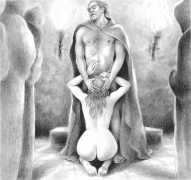 An important aspect of Paula’s work is more experimental and concerned with exploring the connection between human sexuality and Nature: exquisite, colour-drenched drawings where sensual bodies become landscapes and vice versa. These ‘bodyscapes’ are wonderful images, but they are not dealt with in this book: they feature in two earlier titles published by EPS, The Illustrative Art of Lynn Paula Russsell and A Sexual Odyssey. Yet another area that is more than adequately covered elsewhere is her excellent ‘adult comic’ work: Sabina I and Sabina II, two further EPS publications.