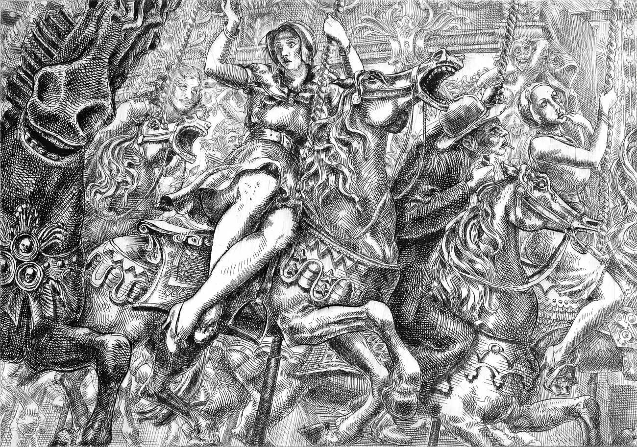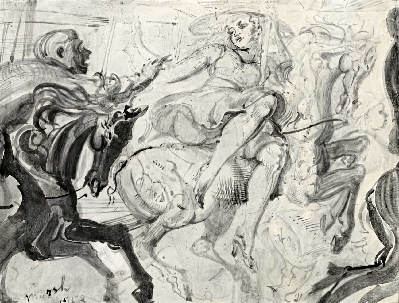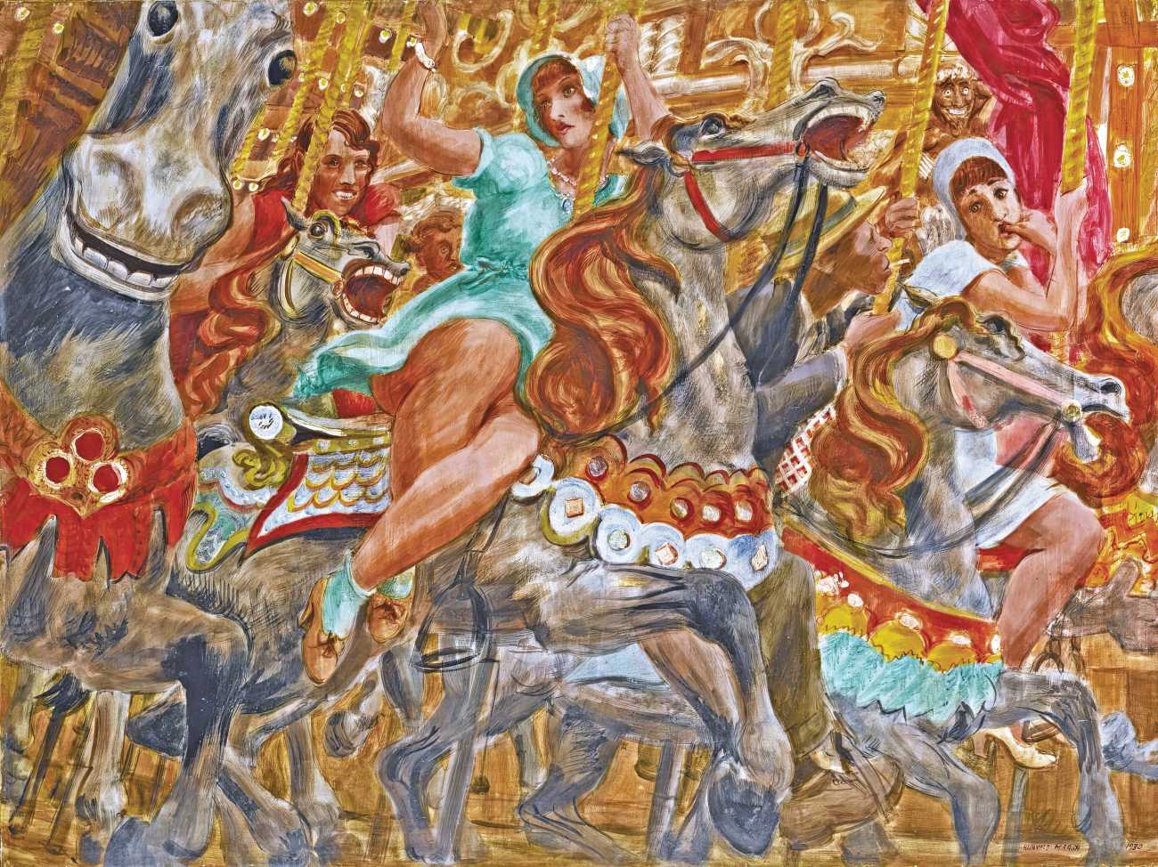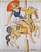 He would often paint the same image several times in slightly different styles and media, as with his ‘Girl on a Carousel Horse’ series.