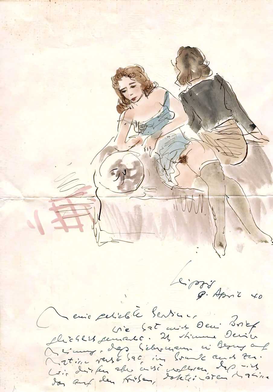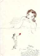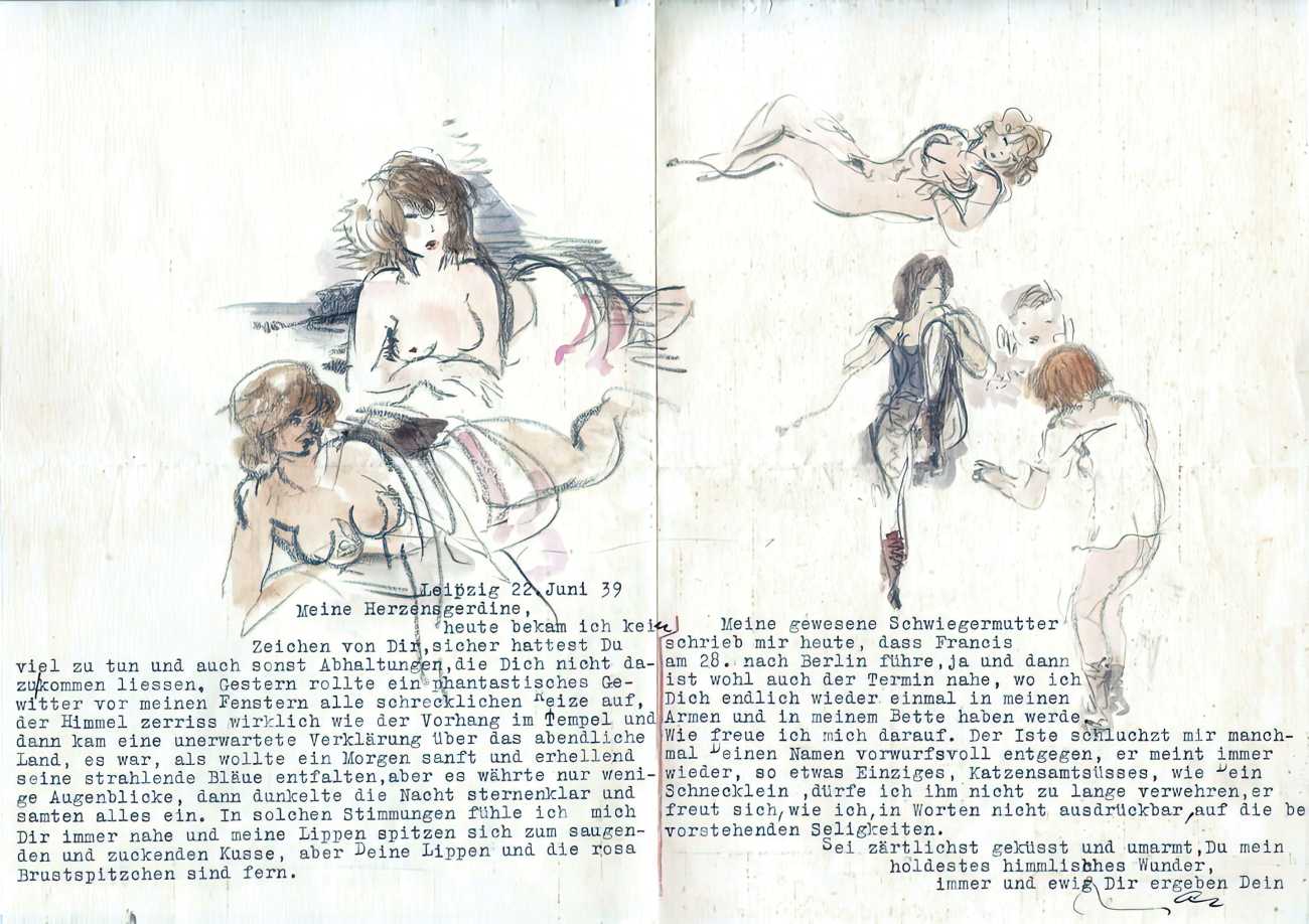 During the late 1930s and early 40s Max Schwimmer was very much in love – and clearly also in  lust – as these illustrated love letters clearly demonstrate. The object, possibly objects as only a few of the letters include the name of the recipient, must have been delighted to receive such personalised and colourful missives.