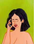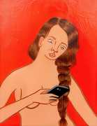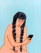 Network is an ongoing series project of small paintings on wooden panels, just 8 x 6cm, that started in 2015, with individual works being added as the creative spirit moves. As so often the theme is young women’s relationship with mobile technology and social media.
