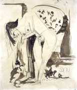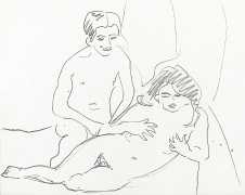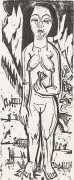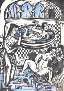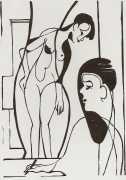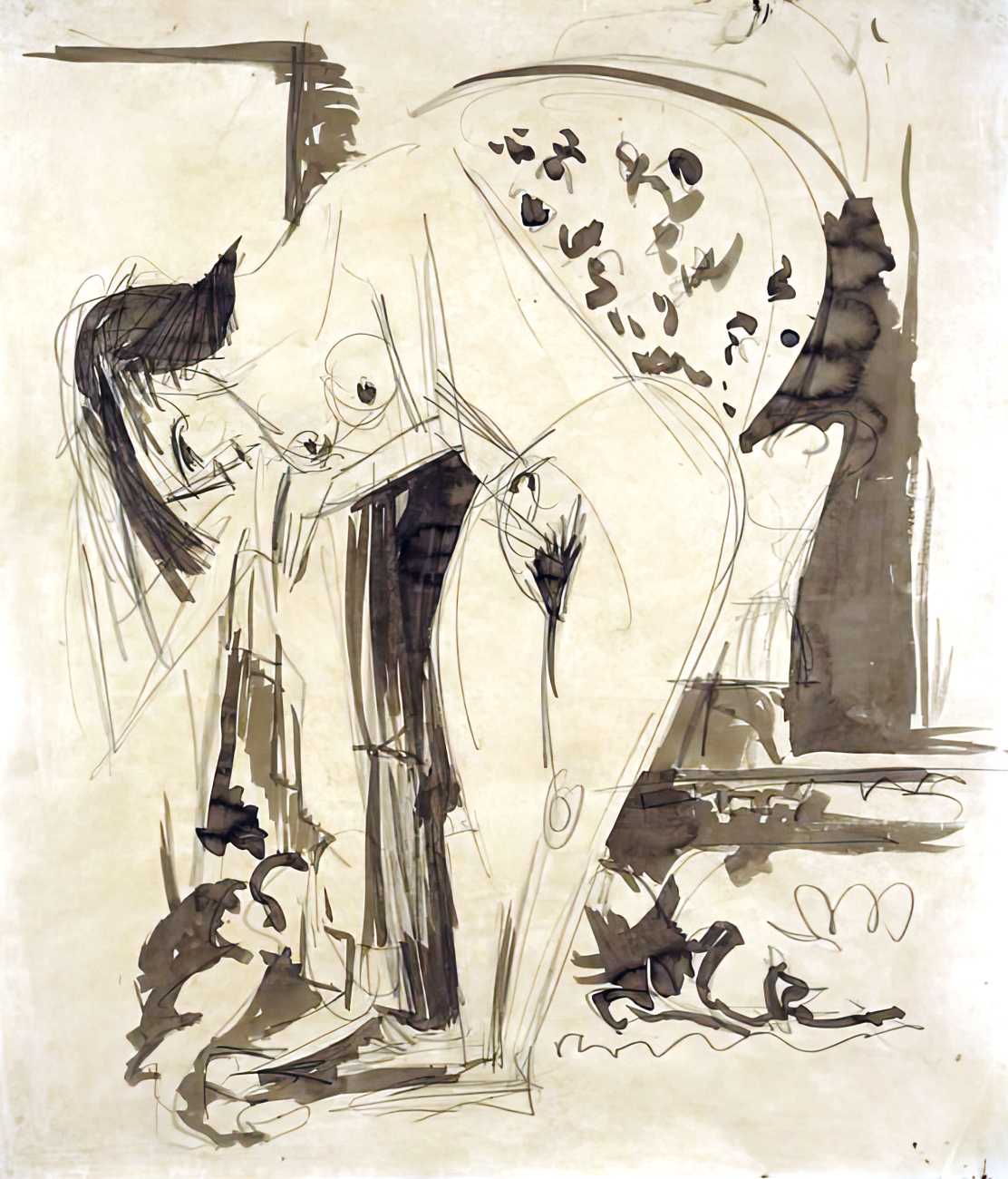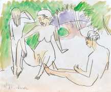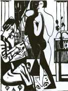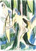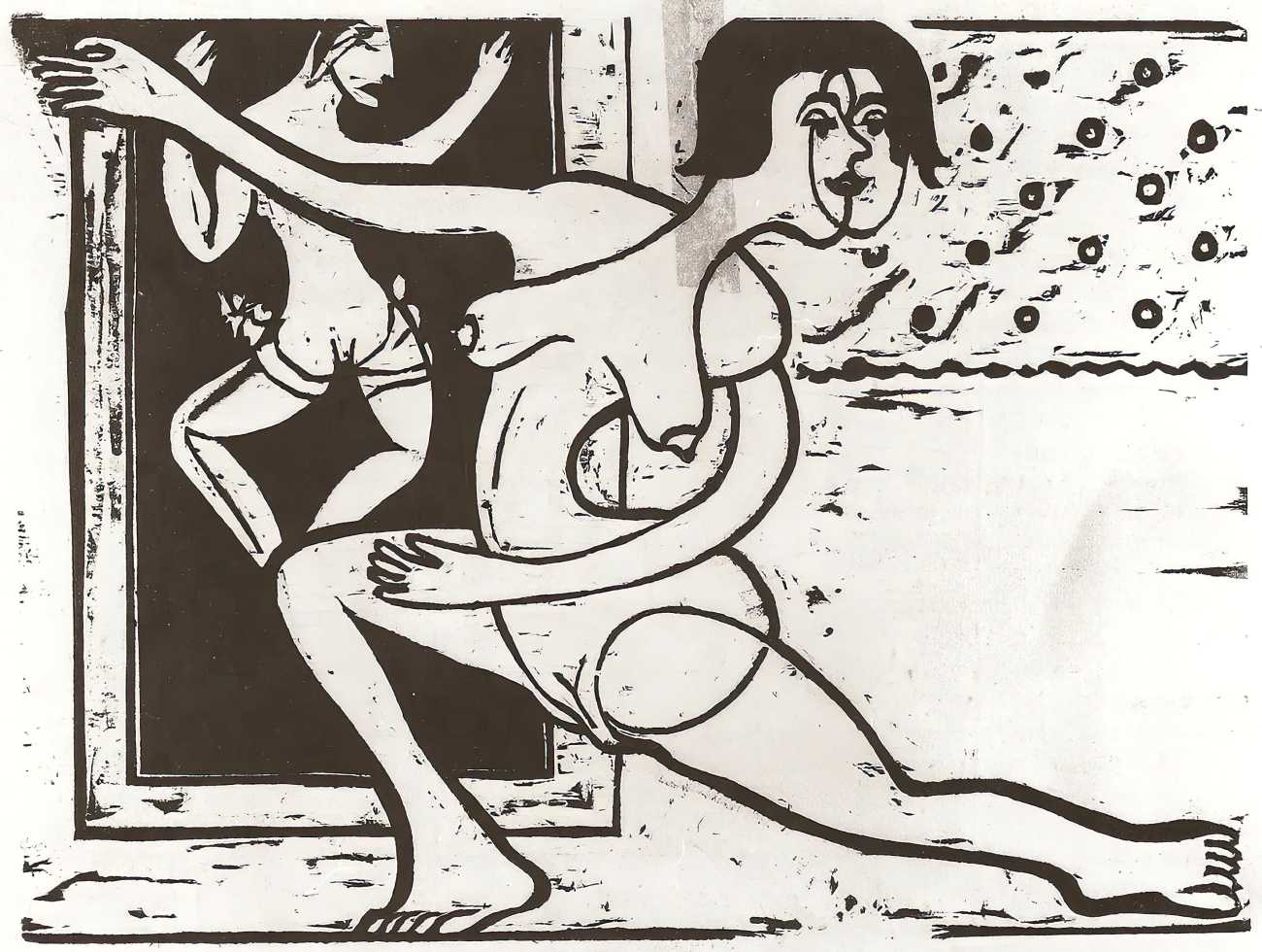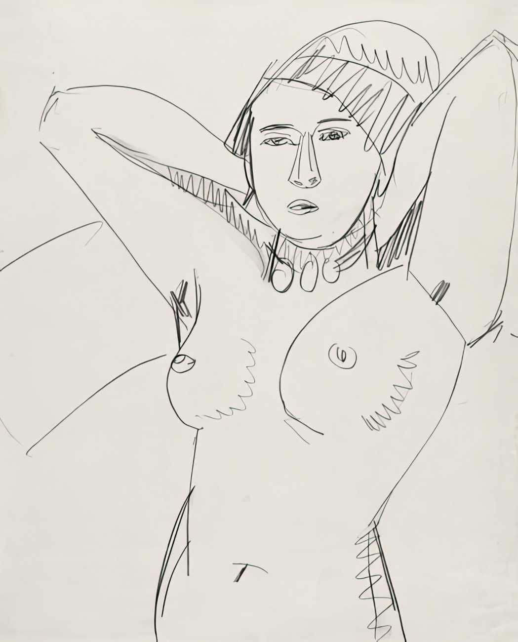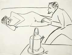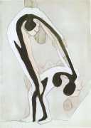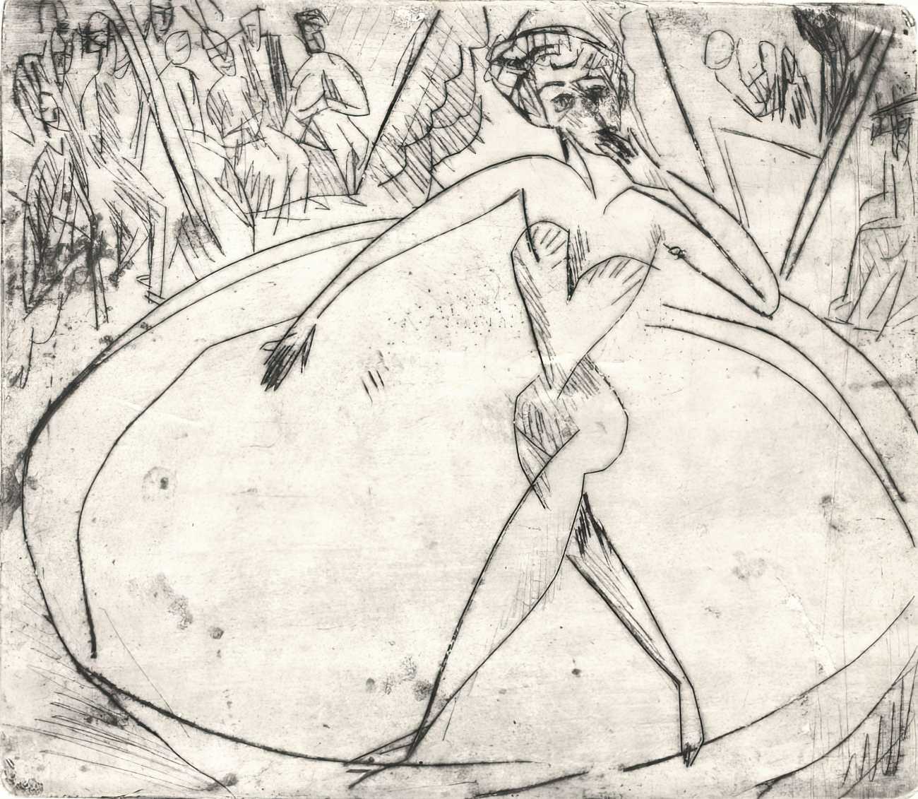 In Kirchner’s drawings the erotic appears with a directness and immediacy distinct from the more theatrically charged sensuality of his paintings. Working quickly with charcoal, ink or pencil, Kirchner used drawing as a laboratory for exploring bodily presence stripped of narrative context or painterly drama. The line became the primary expressive agent, recording desire as a kinetic impulse rather than as a composed scene. His naked subjects often seem caught in a moment of transition – stretching, reclining, dressing, bathing – captured with an economy of line suggesting spontaneity and intimacy.