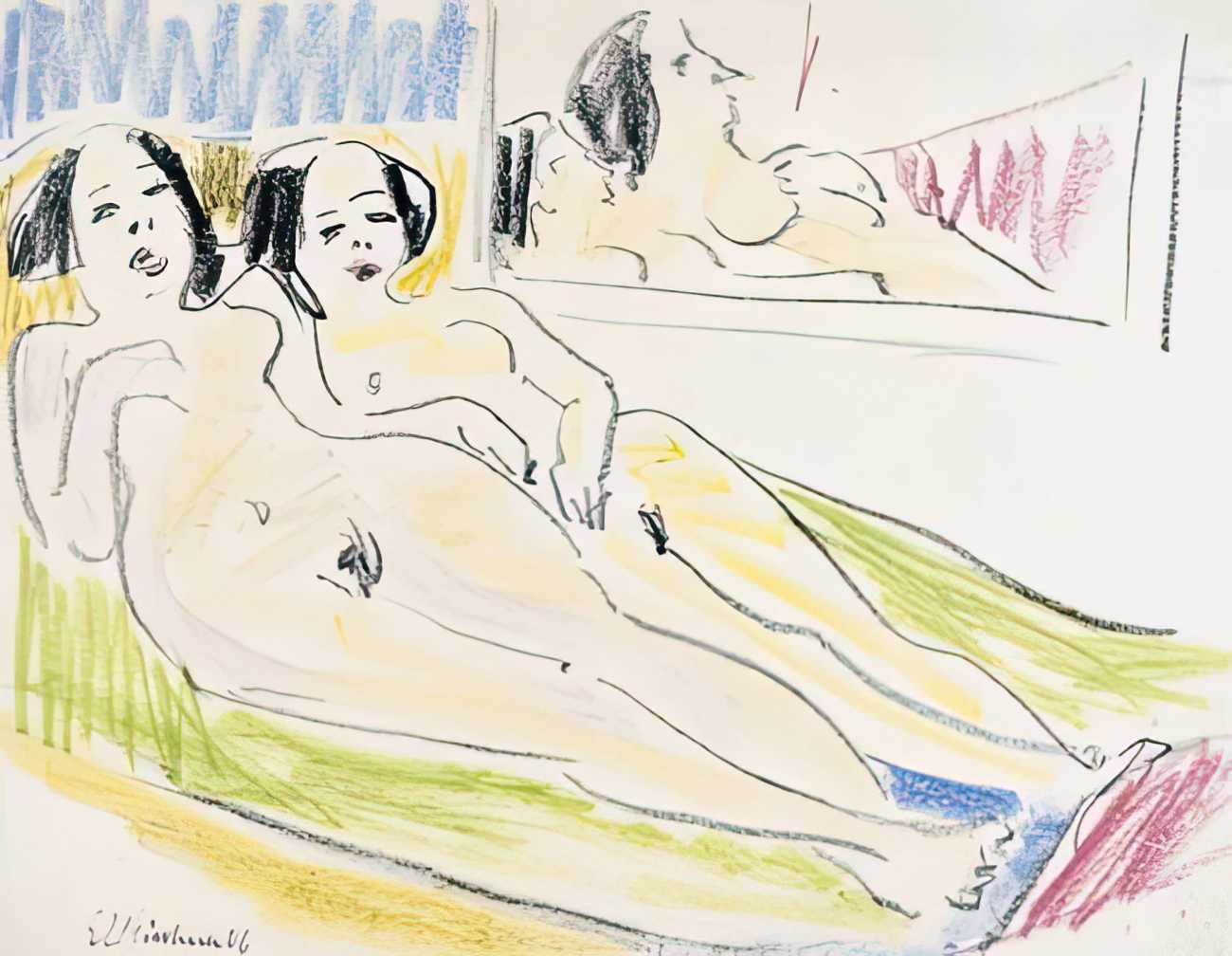 Liegende Mädchenakte (Naked Women Lying Down), 1914