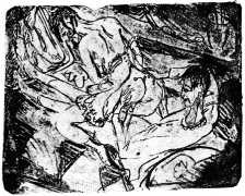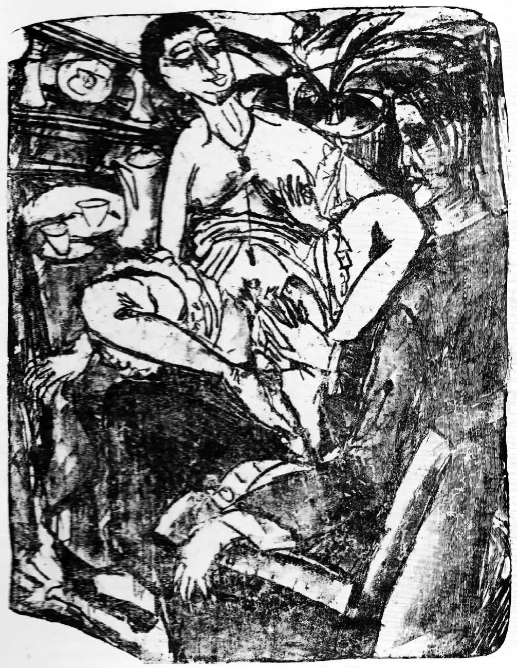 Erna’s sister Gerda, also a dancer, worked more as a model than a sexual partner, though Kirchner was captivated by her presence. She appears frequently in his work, embodying the allure and danger of the modern metropolis. Kirchner’s Berlin life was shaped by a blend of intimacy, artistic collaboration, and the charged atmosphere of the city, a combination that left a vivid imprint on his work from this period, especially in these engravings.