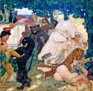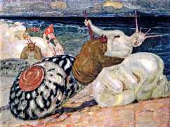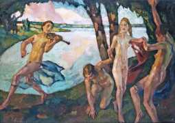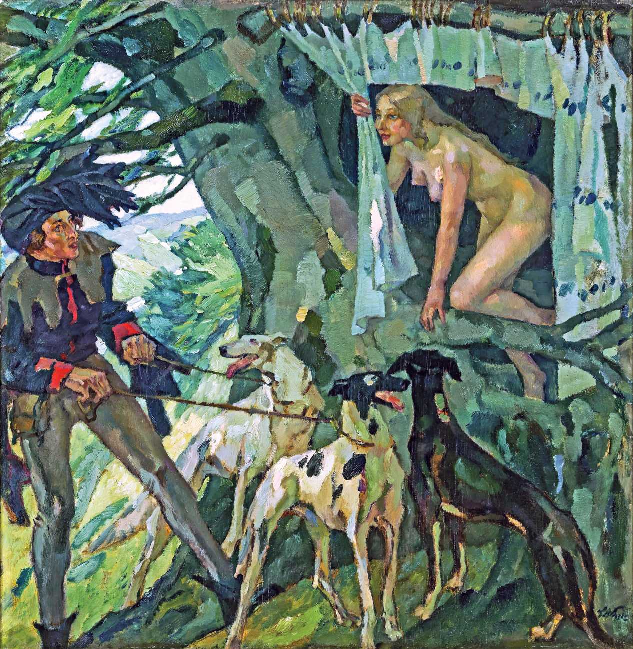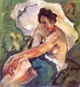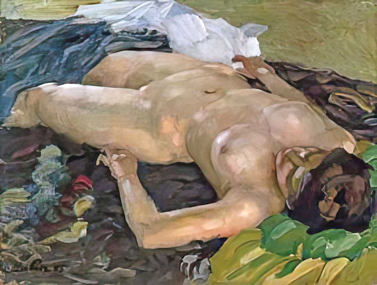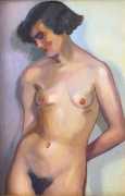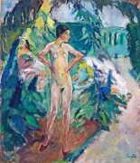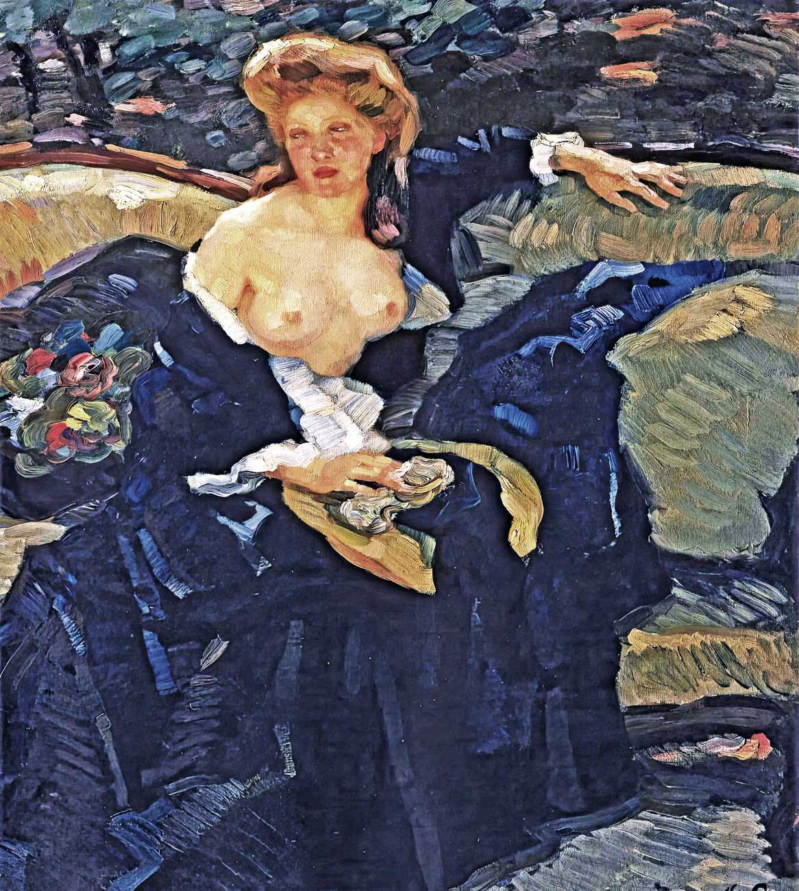 Leo Putz explored eroticism through his oil paintings of naked women, producing works that balance art nouveau elegance with an impressionist sensibility. Rather than shocking revelation, his erotic paintings tend toward a cultivated sensuality, with languid poses, softly modelled flesh, and a focus on atmosphere – sunlit skin, reflective water, and the enclosing landscape – which makes sexuality part of a larger, pictorial harmony.