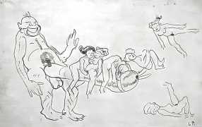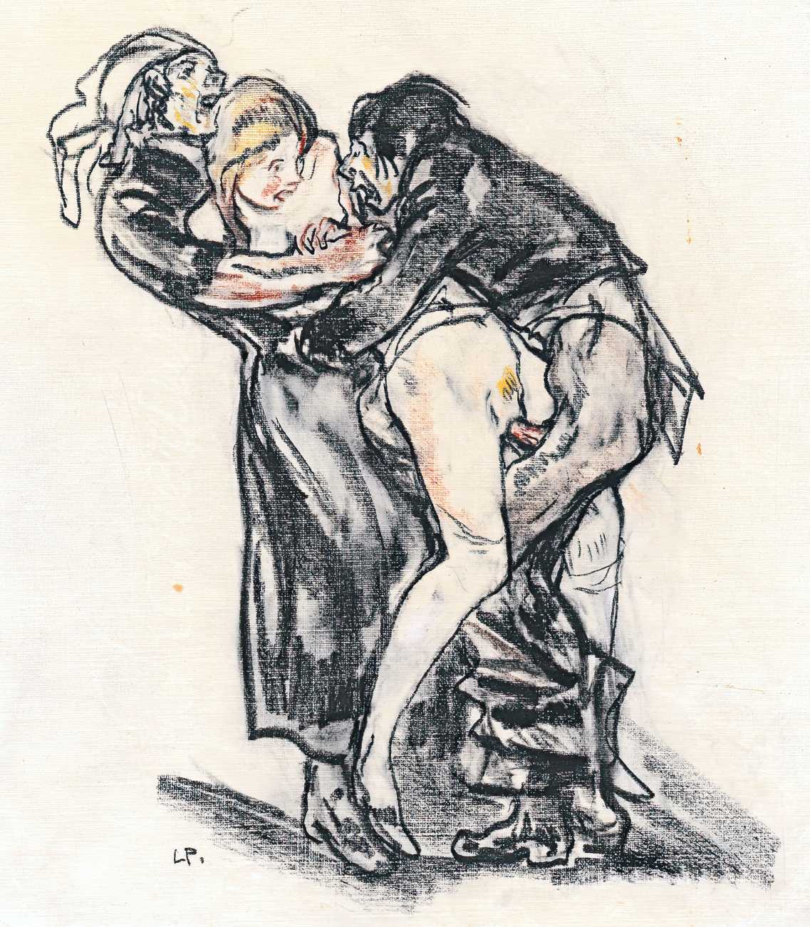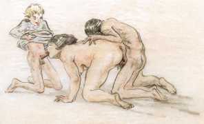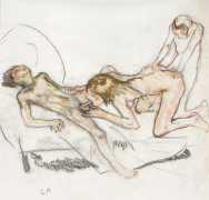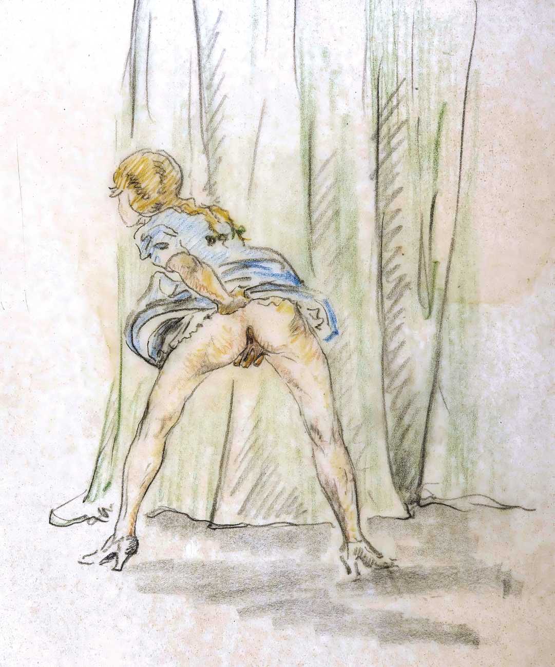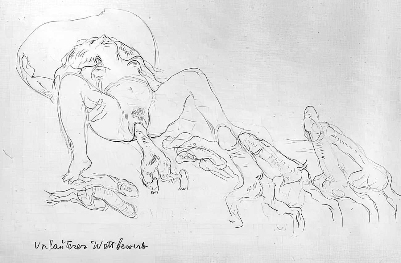 Putz’s surviving drawings also show that he was intimately interested in the more explicitly sexual and physical aspects of the human body, not just its artistic potential. Several portfolios include studies of couples and threesomes enjoying rampant sex, and women displaying their genitals and pissing. Most of these small explicit works which have survived are in private collections, and we are very grateful to Hans-Jürgen Döpp for these images; Hans-Jürgen, the compiler of many books on erotic art, curates the Venusberg online gallery and bookshop which you can find here.