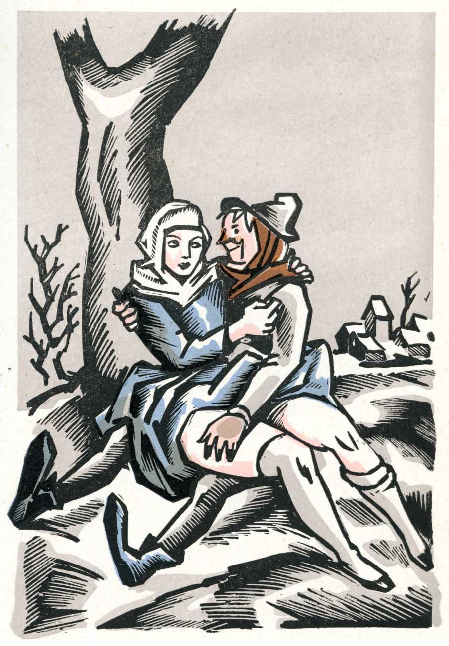 Collot’s ten plates commissioned to accompany the text are coloured woodcuts, demonstrating his mastery of simple yet refined composition and colouring.