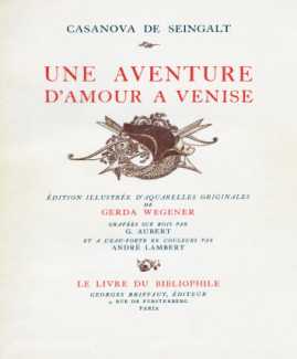 The prolific Paris-based publisher Georges Briffaut knew a good and marketable illustrator when he met one, and following the success of Les délassements de l’Éros he commissioned Gerda Wegener to produce illustrations for a luxury edition of the selected memoirs of one of the most infamous lovers of all time, Giacomo Casanova, Chevalier de Seingalt (pronounced Saint-Galle in the French fashion) – after his exile from Venice to France in 1757 he often signed his works Jacques Casanova de Seingalt.