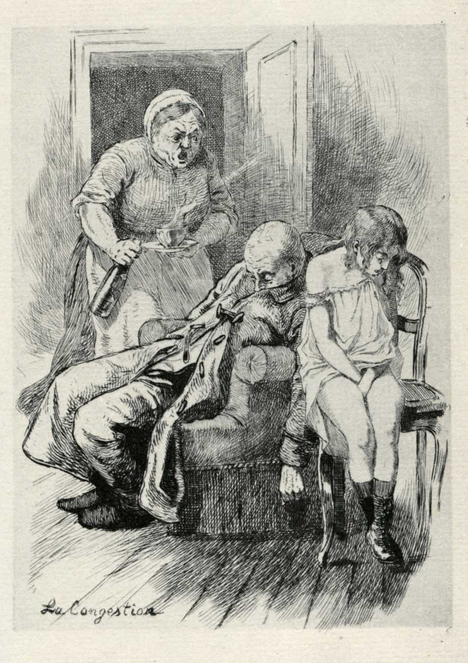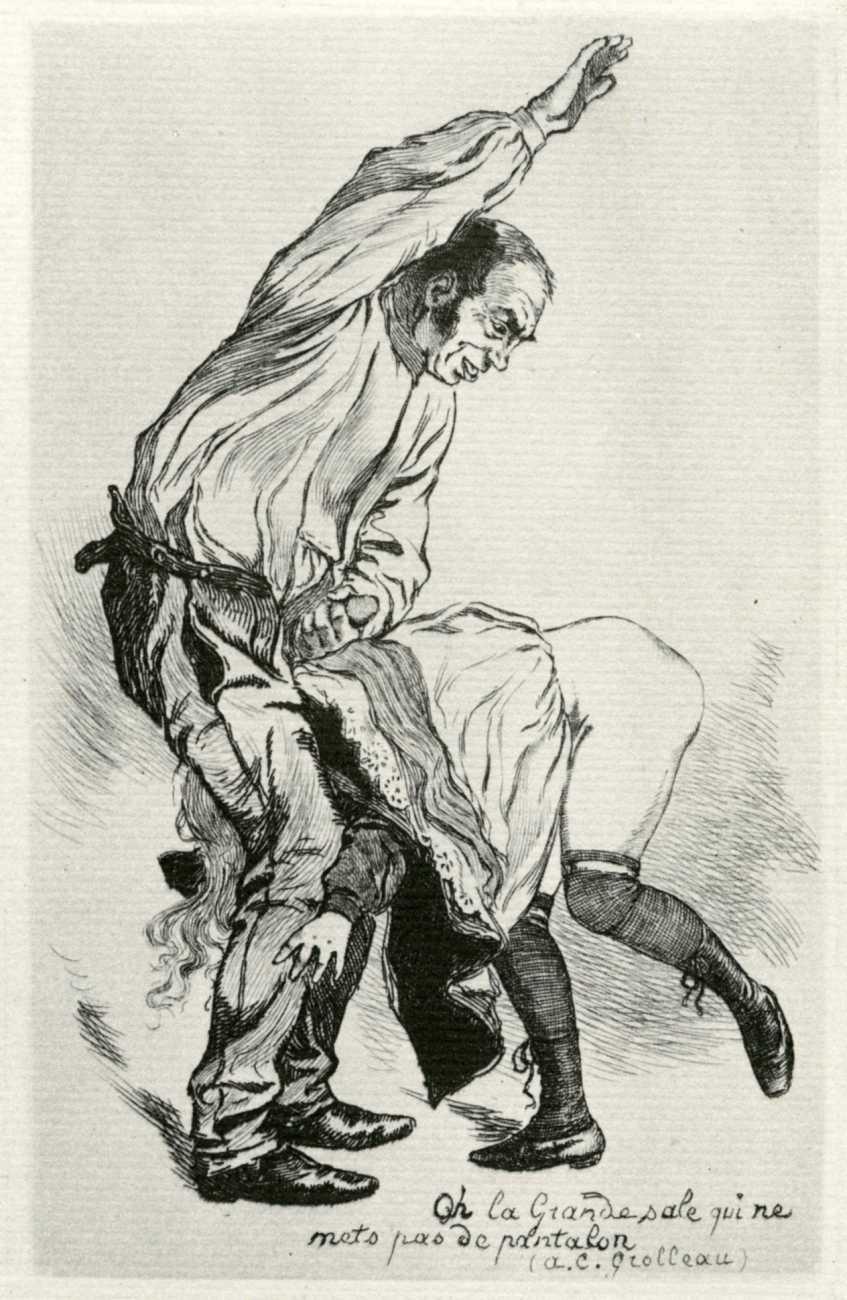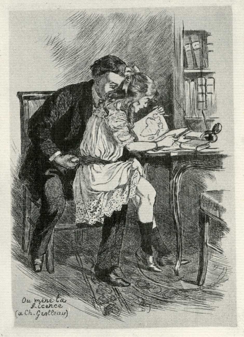 A selection of the etchings from La grande danse macabre des vifs were used later to illustrate a 1930 edition of Pierre Louÿs’ Manuel de civilité pour les petites filles. You can see the repurposed set of plates here.