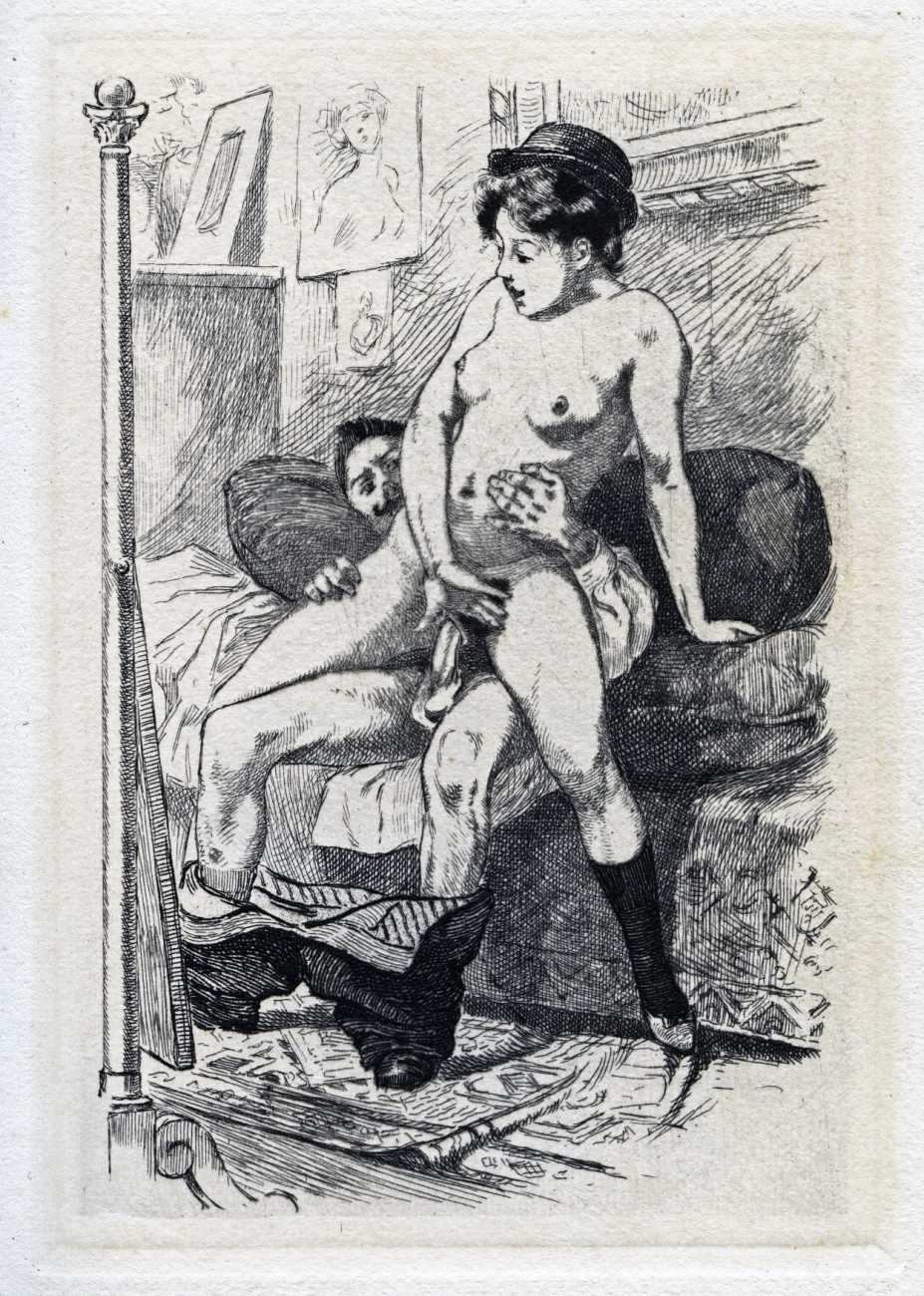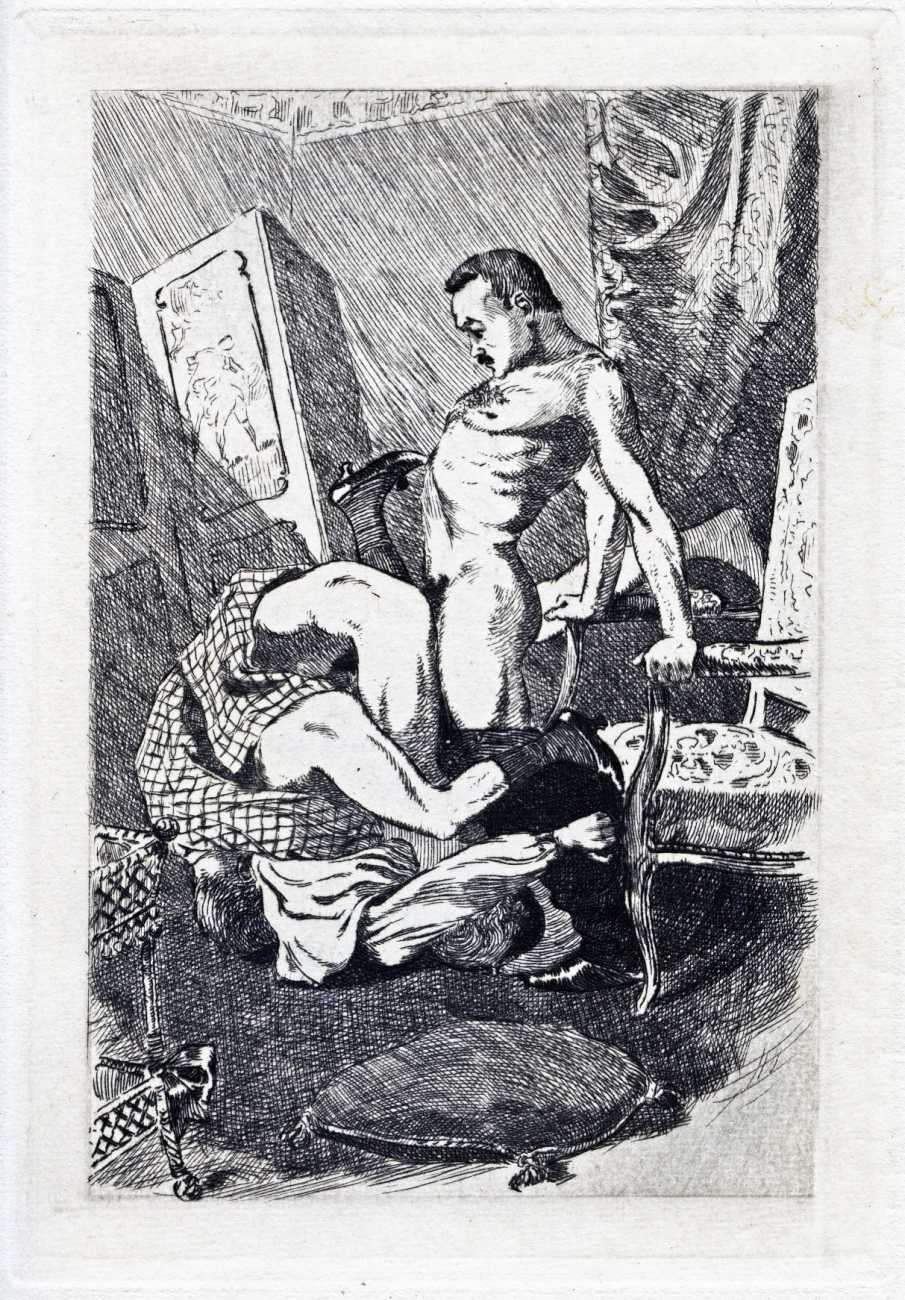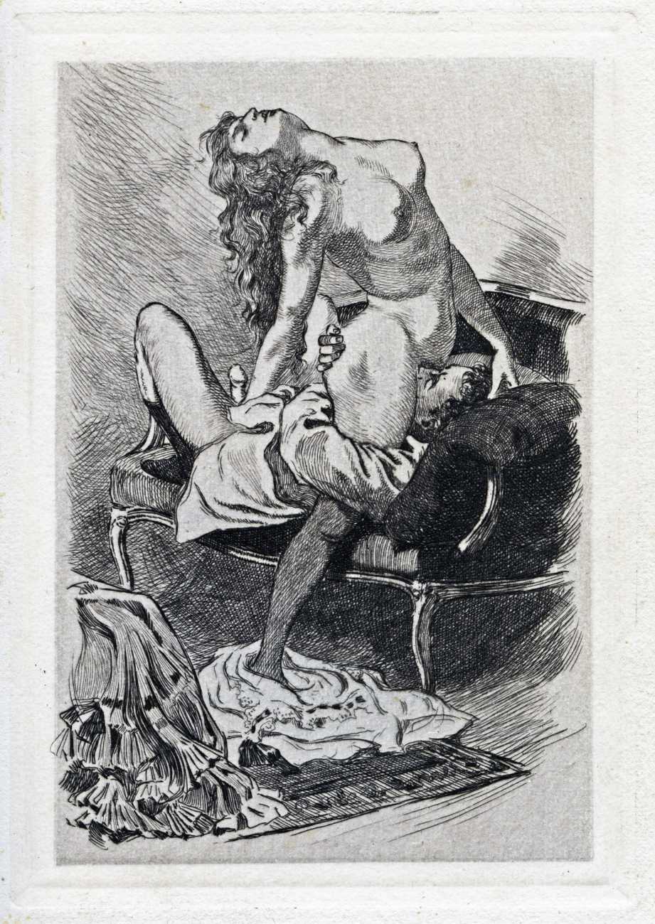 Paul Verlaine’s La trilogie érotique (more usually titled Oeuvres libres) consists of three collections of poems – Les amies, sonnets in praise of lesbian love; Femmes, homage to Verlaine’s women friends and lovers; and Hommes, inspired by his homosexual experiences. It was a favourite text for erotic illustrators, and provided Martin van Maële with the inspiration for what his patron, Charles Carrington, considered his best work.