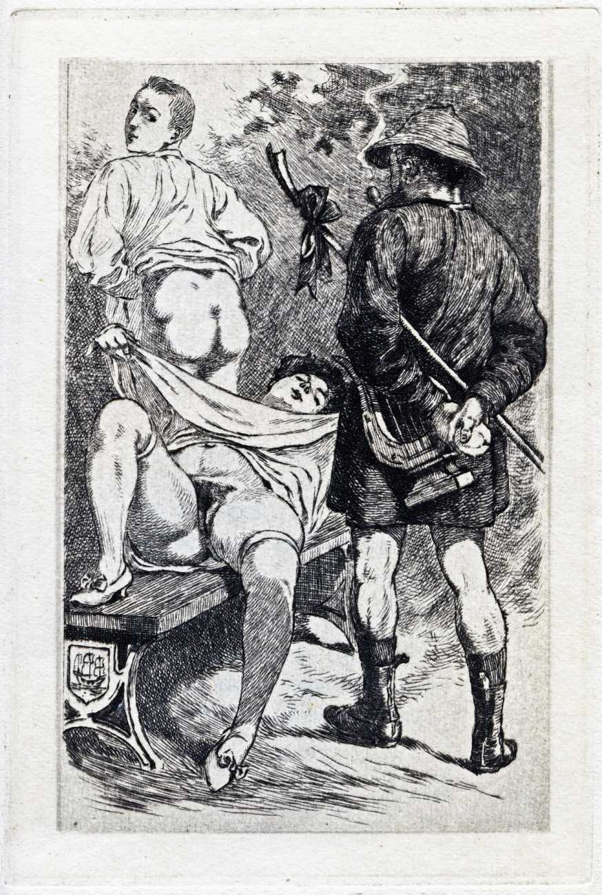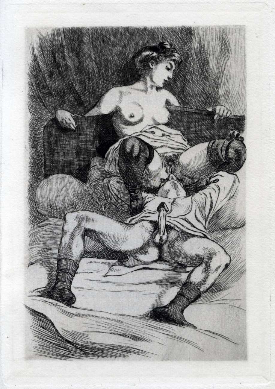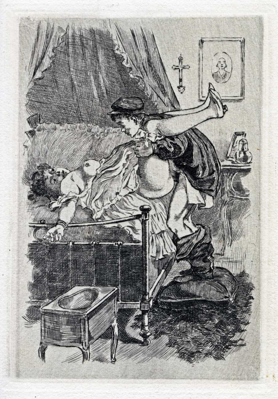 Paul Verlaine’s La trilogie érotique (more usually titled Oeuvres libres) consists of three collections of poems – Les amies, sonnets in praise of lesbian love; Femmes, homage to Verlaine’s women friends and lovers; and Hommes, inspired by his homosexual experiences. It was a favourite text for erotic illustrators, and provided Martin van Maële with the inspiration for what his patron, Charles Carrington, considered his best work.