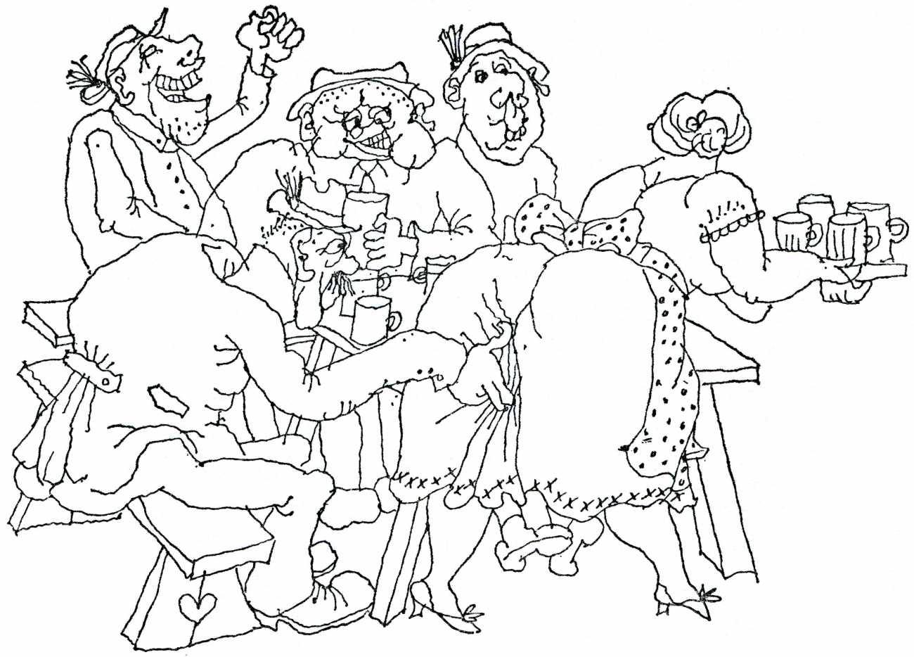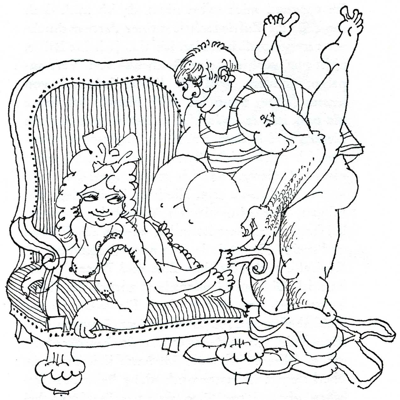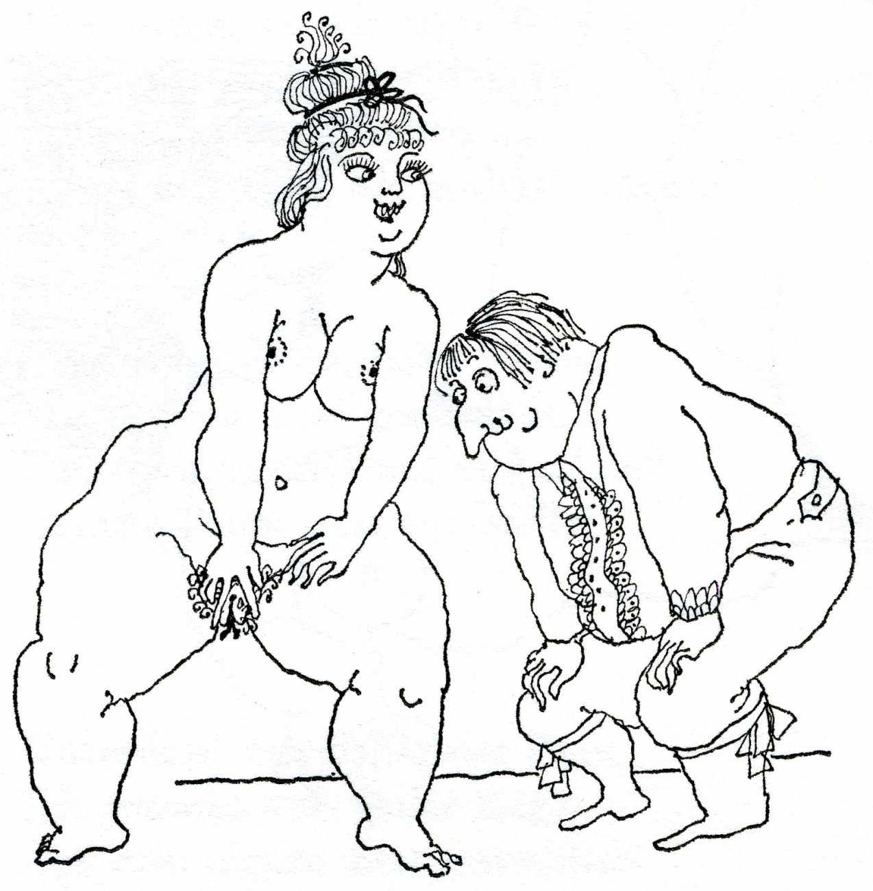 This collection of German bawdy rhymes, songs and stories was published by the Hanau am Main publisher Karl Schustek after Székely’s death, which meant that many of the illustrations were either completed or created by his friend, the Dutch cartoonist Jean Veenenbos (1932–2005). It is impossible to tell which artist drew which illustration, though the visual signature of each can be seen in the quickly-drawn, wittily-conceived drawings.