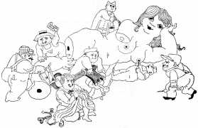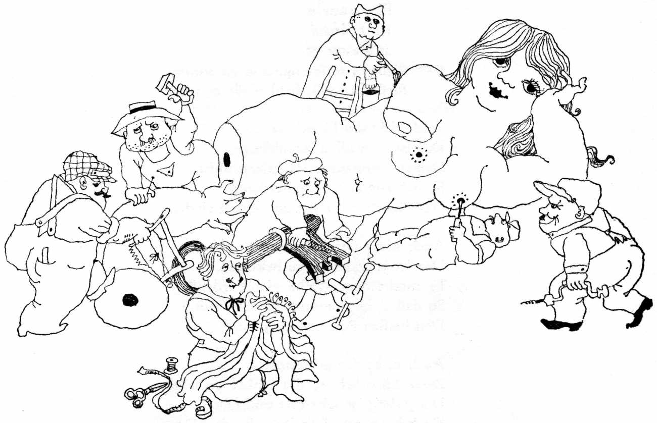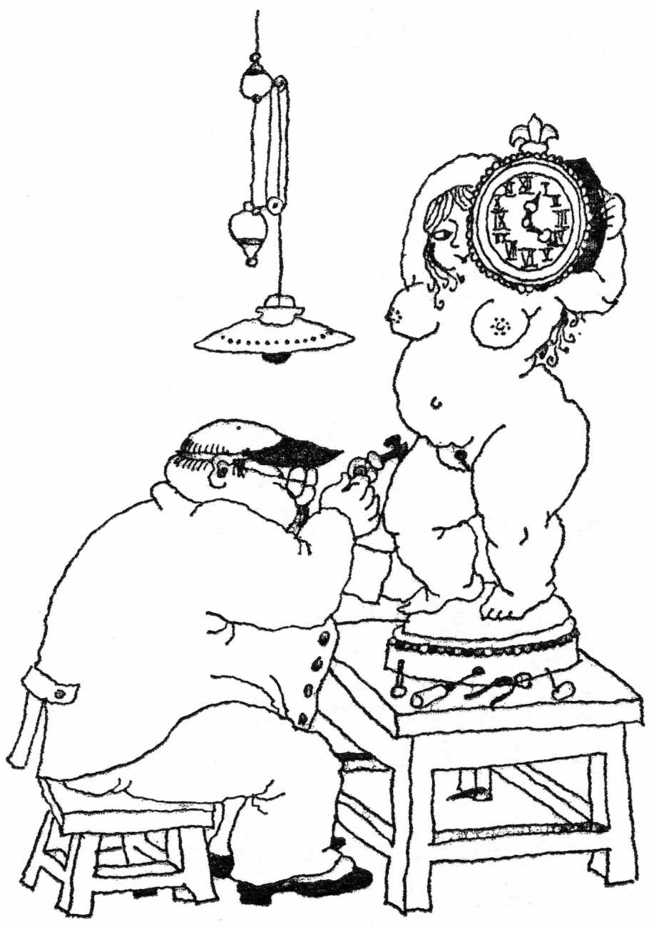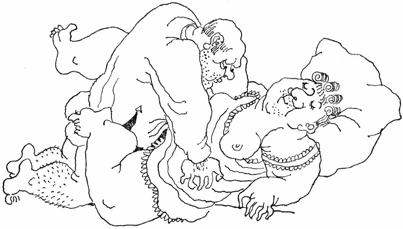 This collection of German bawdy rhymes, songs and stories was published by the Hanau am Main publisher Karl Schustek after Székely’s death, which meant that many of the illustrations were either completed or created by his friend, the Dutch cartoonist Jean Veenenbos (1932–2005). It is impossible to tell which artist drew which illustration, though the visual signature of each can be seen in the quickly-drawn, wittily-conceived drawings.