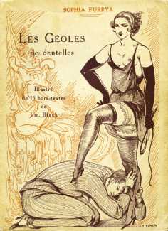 Paris in the 1930s was the place to obtain quality erotica, and many an English businessman visiting the city would pay a call to one of the small specialist bookshops offering such material. Top of the shopping list would be stories involving flagellation, ‘the English vice’, especially if they were illustrated. The offerings of Collection des Orties Blanches (White Nettle Collection) were perfect, with titles like Maisons de flagellation and Mrs Goodwhip – and Les geôles de dentelles (The Lacy Dungeons), written by Sophia Furrya (one of the many noms de plume of the prolific Liane Lauré) and illustrated by Luc Lafnet using his favourite pseudonym, Jim Black.