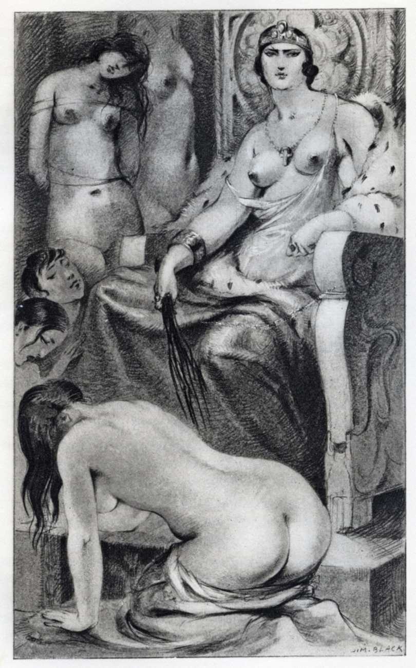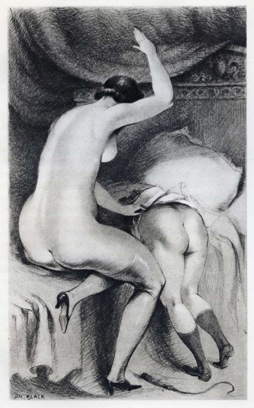 Fort commissioned Lafnet to produce illustrations for both books, all signed with the pseudonym ‘Jim Black’. Naked buttocks being the artist’s forte, they complement the florid text perfectly.