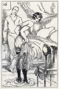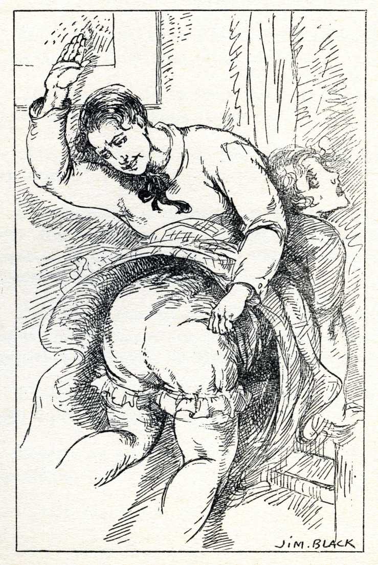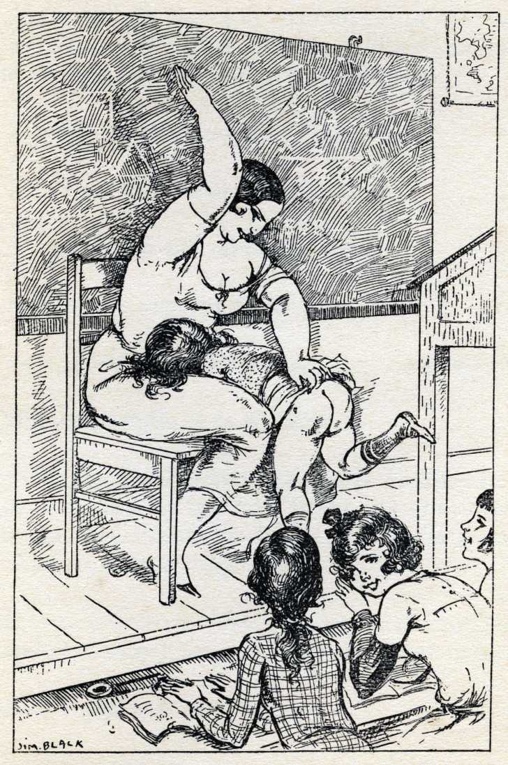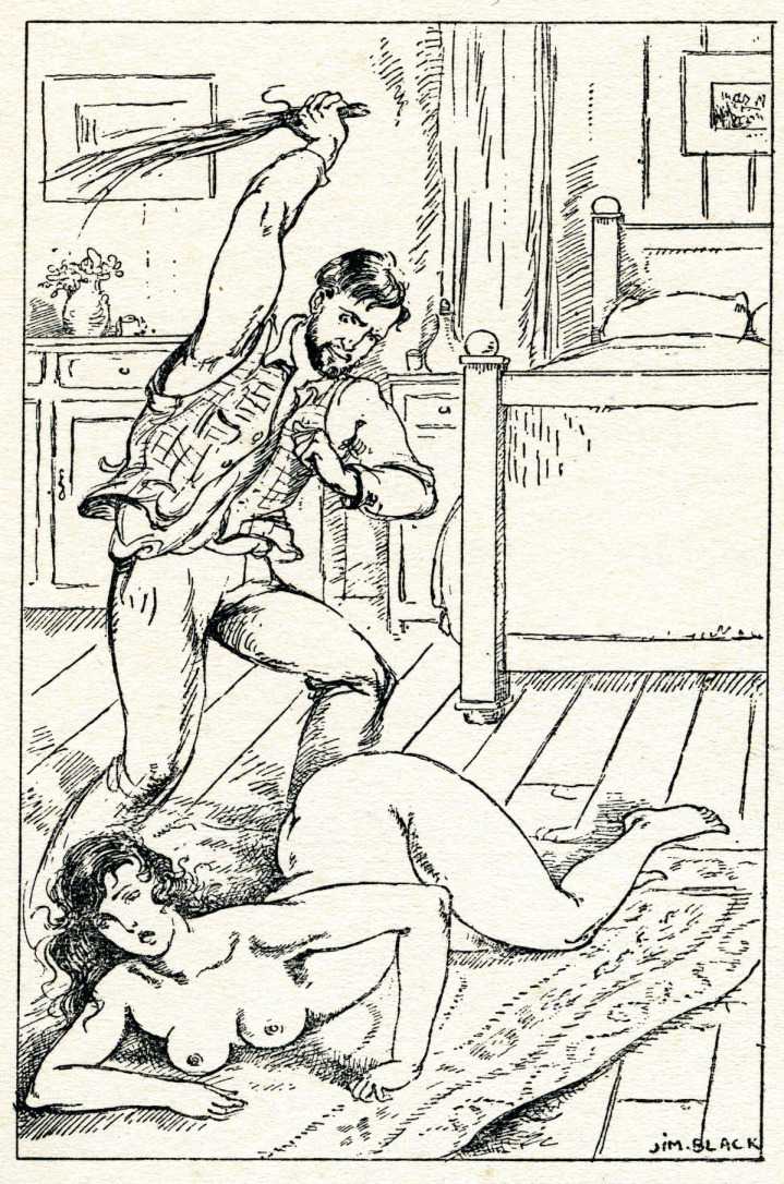 Esclave amoureuse: roman sur la flagellation de la petite fille, de la maîtresse et de l’épouse (Slave love: the story of the flagellation of the little girl, the mistress and the wife) is one of several spanking novels published by Jean Fort and illustrated by Lafnet (under his Jim Black pseudonym) in his extensive Collection des Orties Blanches (White Nettle Collection). The story itself is straightforward and well-written, that of a young woman who experiences her first flogging at the hands of a woman teacher, thereafter more or less willingly submitting to her lover and her husband.