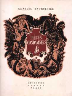 Charles Baudelaire’s Fleurs du mal (The Flowers of Evil) was first published in 1857, but neither of the first two editions included the six poems known as Pièces condamnées (The Banned Poems), which were omitted at the demand of the French government censors. The ‘forbidden’ poems (‘Lesbos’, ‘Femmes damnées (à la pâle clarté)’, ‘Le Léthé’, ‘À celle qui est trop gaie’, ‘Les bijoux’, and ‘Les métamorphoses du vampire’) appeared in print in 1866, but were officially banned in France until the 1940s because of their lesbian and sado-erotic content. This made them particularly attractive to art publisher Editions Henrys, who commissioned Raoul Auger to produce six full-page illustrations and six poem headers for their limited edition of Baudelaire.