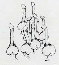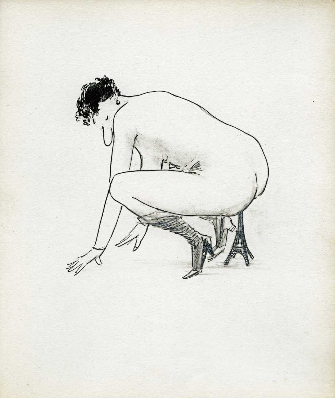 This 1960 portfolio of erotic cartoons by Tetsu has a title which can only be guessed at by seeing its title page; you need to know that in French ‘la queue’ is a penis, ‘que’ means ‘which’, the second little drawing suggests where ‘la queue’ might go, and ‘Q’ probably indicates all the questions arising.