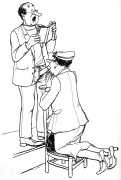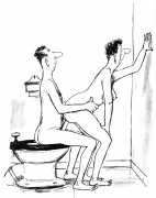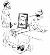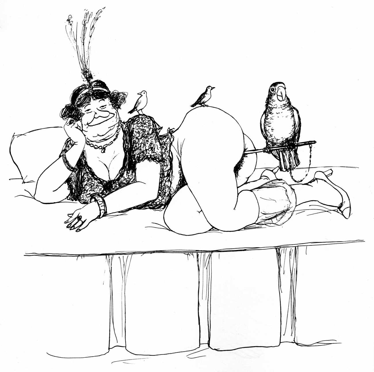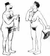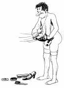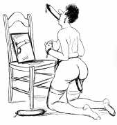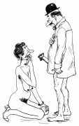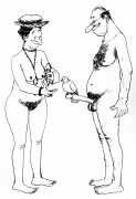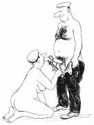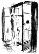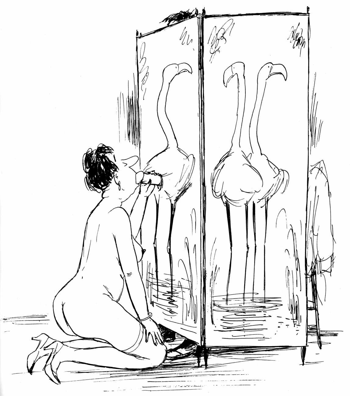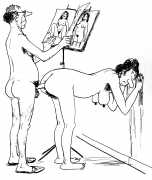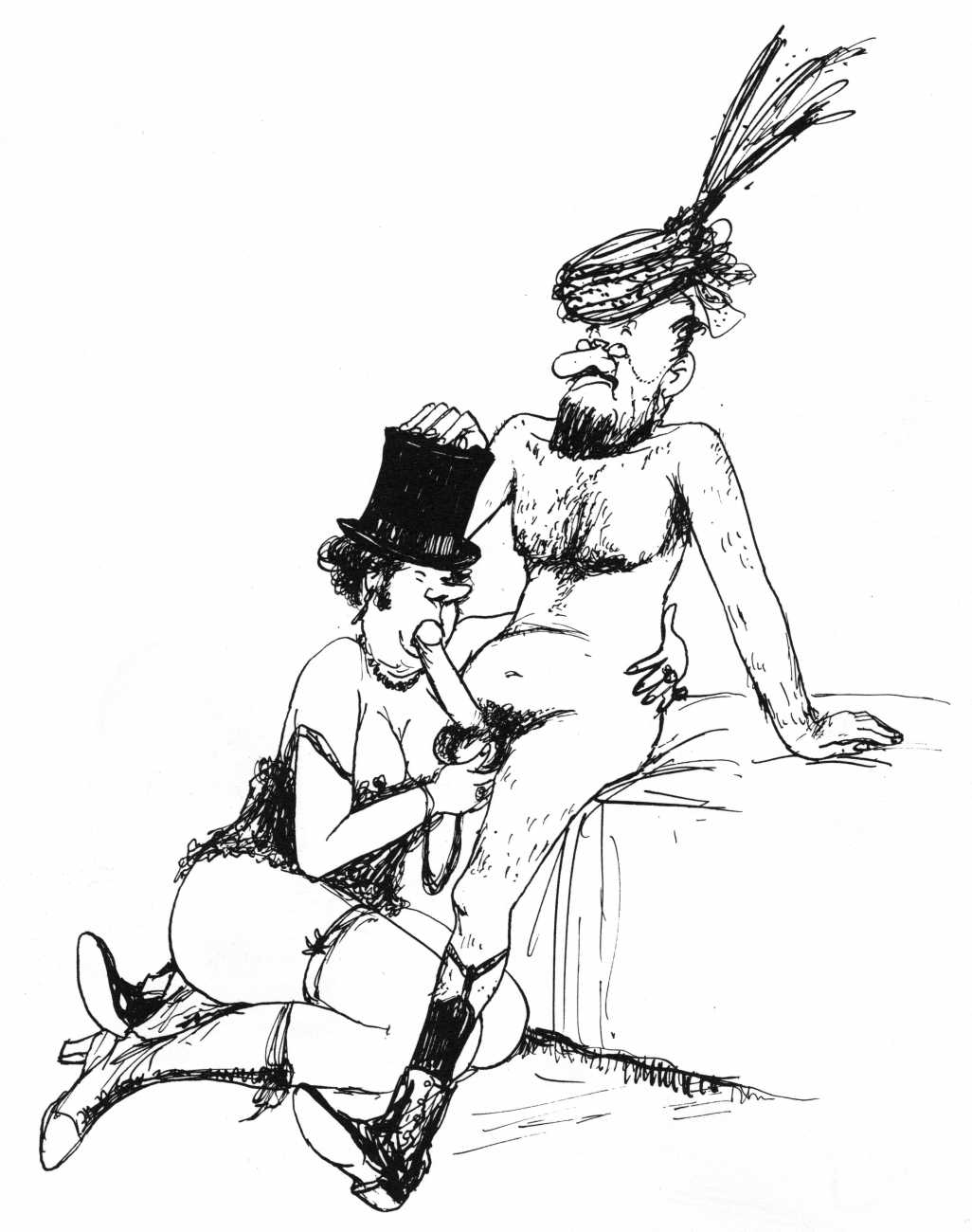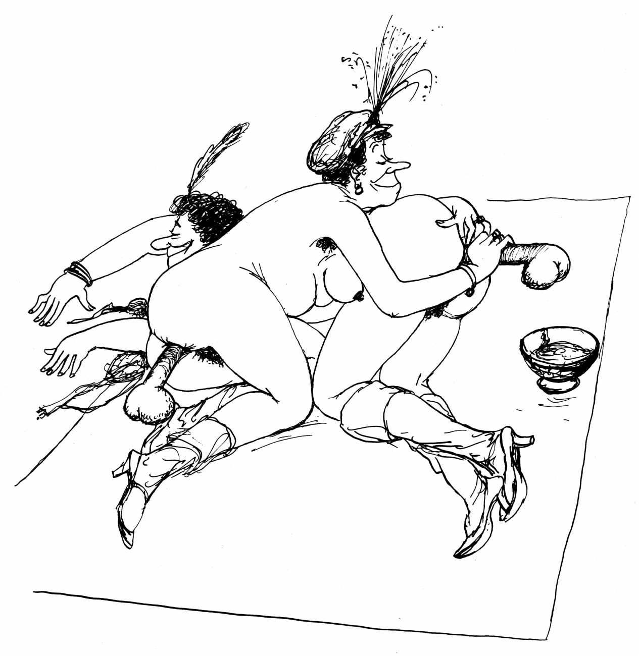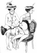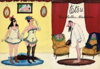Tetsu’s second, much larger, erotic portfolio was published when he was in his late eighties, so represents a lifetime of observing how people interact in intimate situations. Les belles manières translates as ‘good manners’, a tongue-in-cheek reference to mature French behaviour, complete with tricolour flags, the foreign legion, and a miniature Eifel Tower.