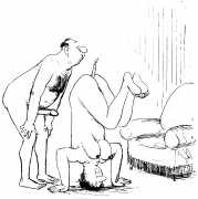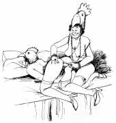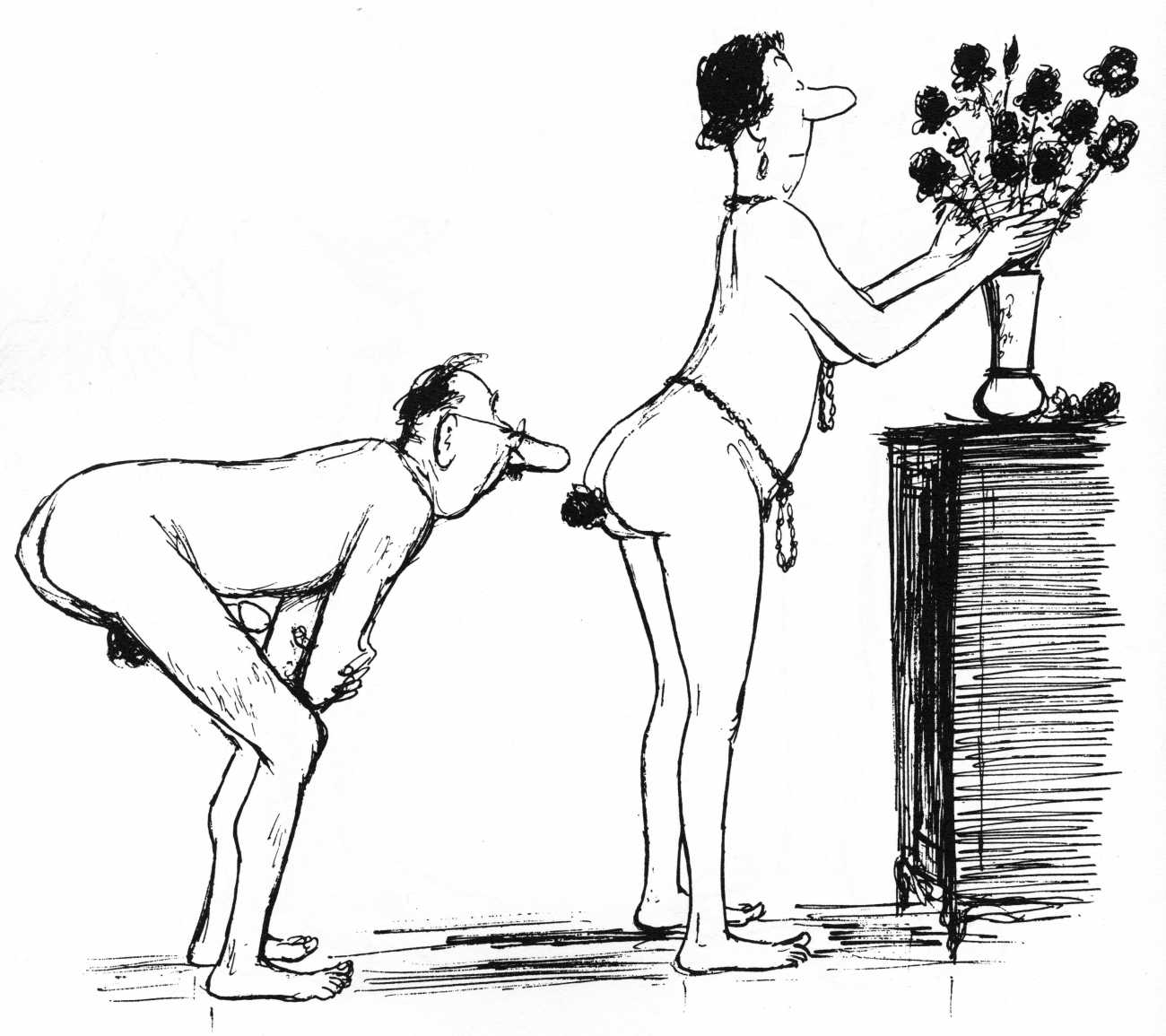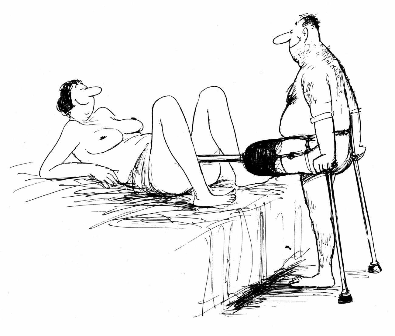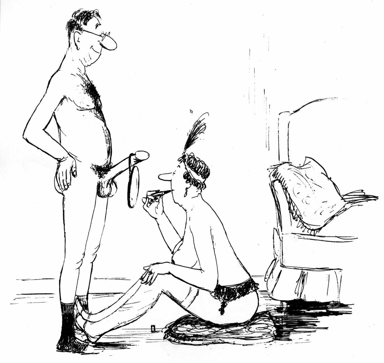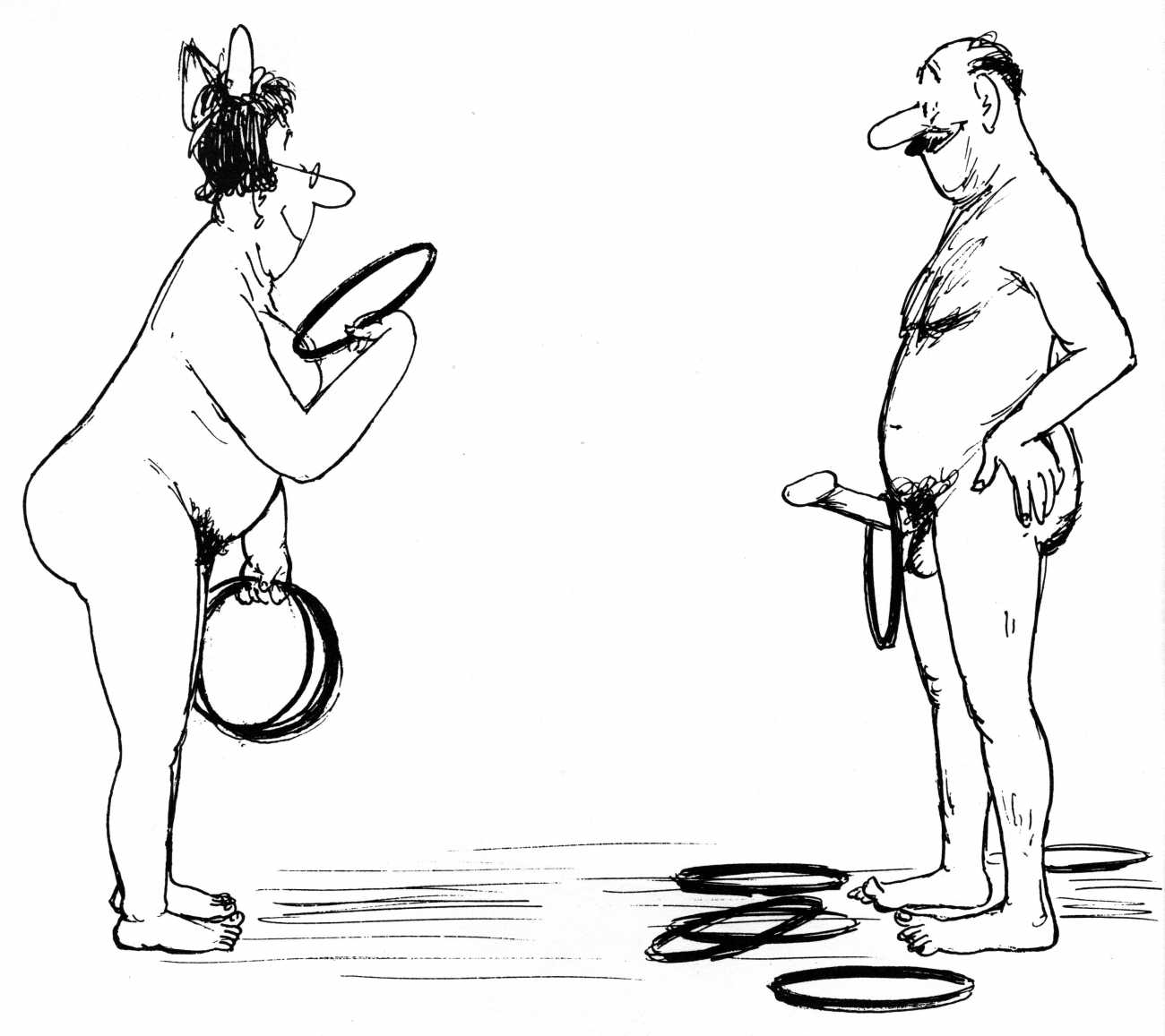 While most definitely in traditional cartoon style, his middle-aged characters have curves in all the right places, and the situations they find themselves in will ring bells of reality for many.